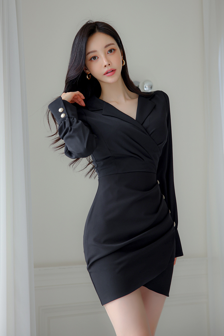 孙允珠优雅气质,浅蓝色连衣裙,都市时尚风。