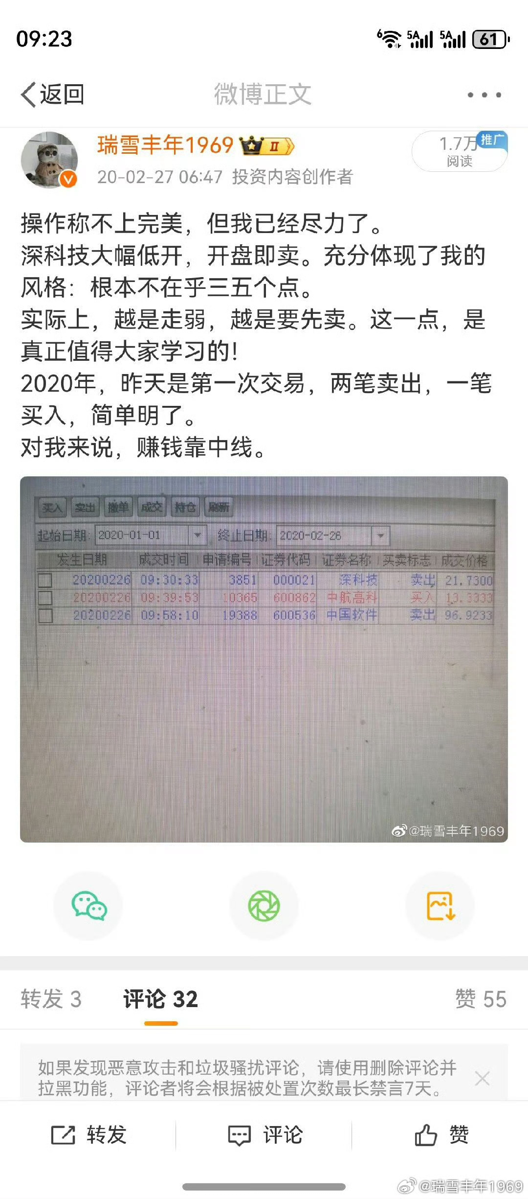 2020年2月25日,老鸭抗新冠值勤。收盘后打电话给同事:坏了,我下午忘记卖股票
