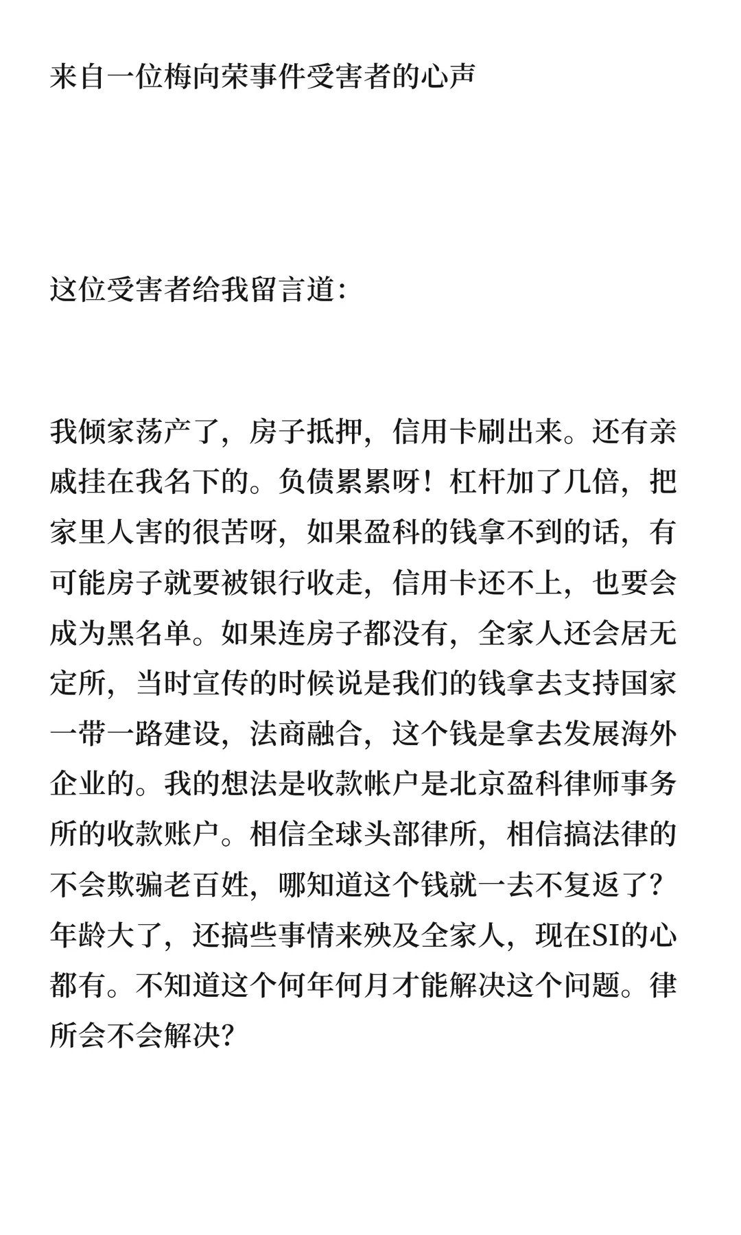 来自一位梅向荣事件受害者的心声