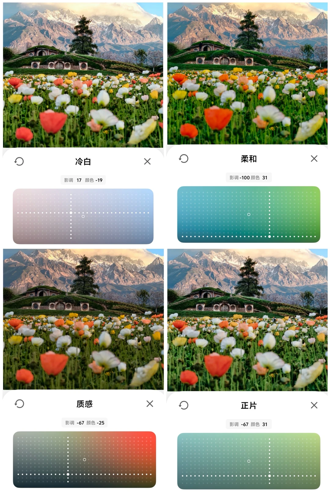 P7新出的调色盘功能也非常好用,一秒出片,调出自己喜欢的照片氛围,还支持在不同滤镜的基础上叠加调色盘进行精细化调节,调出属于自己的专属风格~可以试试我的配方