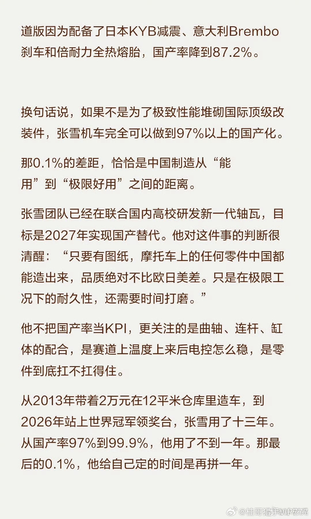 刚拿下世界冠军张雪就自曝家丑 99%国产率的赛车,藏着两个小日子零件 桂哥评:这