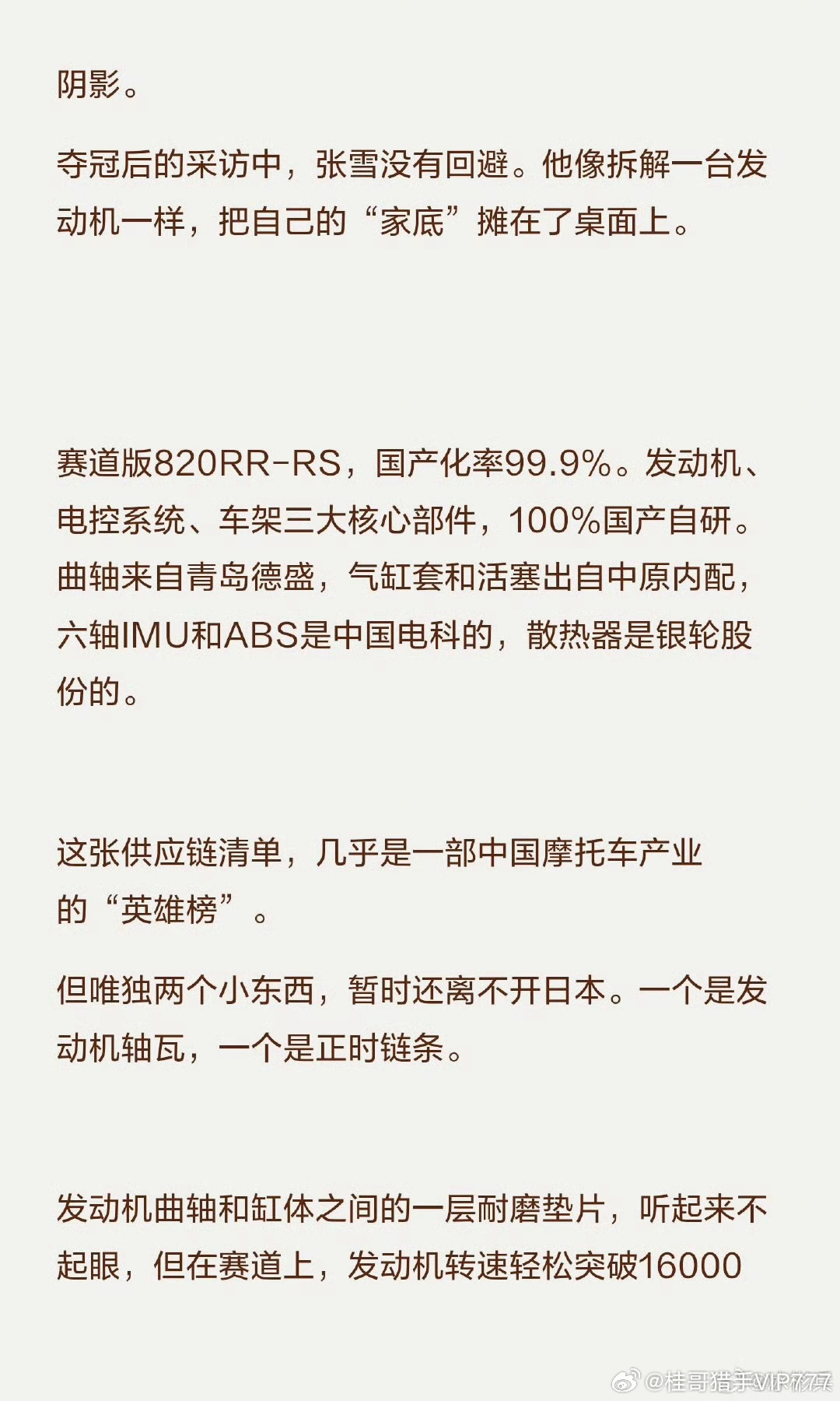 刚拿下世界冠军张雪就自曝家丑 99%国产率的赛车,藏着两个小日子零件