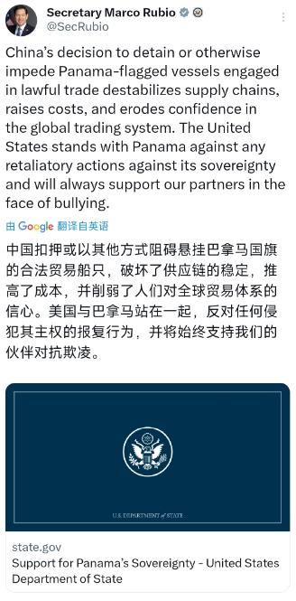 美国国务卿鲁比奥昨晚发文,火力全开朝中国开炮了。 美国国务卿鲁比奥,4月2号晚上突然发文,对着中国一顿指责,那架势,恨不得把所有脏水都泼到中国身上。 他在公开声明里声称,中国对悬挂巴拿马国旗的船只进行所谓 “骚扰、扣押”,还危言耸听地说这类行为破坏了全球供应链稳定、推高企业与消费者成本,甚至削弱了全球贸易体系的信心,最后还高调表态,美国会和巴拿马站在一起,反对所谓 “侵犯主权的报复行为”,要支持伙伴对抗 “欺凌”。 首先得说清楚,中国海事部门确实在3月8日到3月12日之间,检查过28艘巴拿马籍的船舶,还对它们进行了滞留,但这可不是鲁比奥说的“骚扰、扣押”,两者根本不是一回事。 滞留是啥意思?就是这些船查出了安全隐患,比如消防设备坏了、救生设施没有标识、船员的证书不全,还有机舱漏油、压载水记录缺失这些问题,按照《国际海事组织公约》的规定,港口国本来就有权利对到港船舶进行安全检查,只要查出问题,就得让船主整改,整改合格了才能放行。 中国这么做,完全是按规矩办事,和全球任何一个港口的常规操作都一样,既没有扣船上的船员,也没有扣船上的货物,更没有无限期把船扣在港口。 到4月初的时候,所有被滞留的巴拿马籍船舶,都已经整改合格正常离港了,根本不存在鲁比奥说的“扣押”一说。 更离谱的是,鲁比奥还造谣说有近70艘巴拿马籍船只被扣押,这数字纯粹是他凭空编出来的,没有任何依据。 有国际航运机构统计过,那段时间中国港口检查的巴拿马籍船只,确实有接近70艘,但大部分都是正常检查,只有28艘因为安全问题被短暂滞留,而且很快就放行了。 鲁比奥故意把“正常检查”和“滞留”混为一谈,还夸大数字,就是为了把事情闹大,给中国扣上“破坏供应链”的帽子。 他之所以这么做,其实就是想暗示中国检查巴拿马籍船只,是对巴拿马强行接管港口的“报复”,想把这件事政治化,炒作中国“欺负”巴拿马。 可他万万没想到,巴拿马自己根本不配合他的表演。巴拿马外长出面澄清,说船舶被滞留是正常现象,就是因为安全检查不合格、文件不齐全,还特意强调,希望和中国保持友好关系,通过对话解决分歧。 这一下就尴尬了,鲁比奥高调宣称“美国和巴拿马站在一起”,结果巴拿马自己都否认了他的说法。 其实大家稍微想想就明白,巴拿马是全球最大的“方便旗”船籍国,很多船主为了省钱、图方便,都会给船挂上巴拿马国旗,这些船的老旧船只比例很高,安全隐患本来就多,被各个国家的港口检查、滞留的概率也比其他国家的船高,这是行业里的常态,根本不是中国针对巴拿马。 还有一点,鲁比奥自己的处境也很微妙。他在2020年7月到8月之间,因为在涉疆、涉港等问题上表现恶劣,先后两次被中方列入制裁名单,禁止入境中国、冻结在华资产。 现在他当了美国国务卿,还收到了陪同特朗普访华的邀请,中方之前也暗示过,制裁针对的是他担任参议员时的言行,言外之意就是,只要他拿出诚意,制裁不是不能解除。 可他偏偏在这个时候,选择发文炮轰中国,明摆着就是想靠抹黑中国,在国内捞取政治资本,显示自己的“强硬”。 他嘴上喊着要维护全球供应链稳定,可实际上,他这种造谣挑事的行为,才是在破坏供应链的稳定,毕竟全球贸易讲究的是诚信和规则,不是靠谎言和炒作。 中国是巴拿马运河的第二大用户,每年有大量集装箱通过运河运往美国东海岸和拉美地区,中国根本没有理由去破坏自己每天都在用的贸易大动脉。 而且中国企业参与巴拿马港口建设和运营,都是正常的商业合作,给巴拿马带来了大量的投资、税收和就业岗位,比如长和集团在巴拿马港口投资了超过18亿美元,缴了6.6亿美元的税,带动了两万五千个就业岗位,这些都是实实在在的贡献。 鲁比奥的这番操作,说到底就是美国霸权思维的体现。他不想看到中国和巴拿马保持友好合作,不想看到中国在全球贸易中发挥越来越重要的作用,就想通过造谣、挑事,破坏中国的国际形象,遏制中国的发展。 可他忘了,现在的世界已经不是美国说了算的时代了,公道自在人心,谎言终究会被戳破。 而且鲁比奥这么一闹,不仅没帮到美国,反而让更多人看清了美国的真面目。 就连国际航运界的人士也纷纷表示,港口国管制是保障海上安全的重要机制,全球每年有数千艘船舶因为安全问题被滞留检查,巴拿马籍船舶被滞留的比例,和它庞大的船队规模是相符的,不存在任何“针对性”。 鲁比奥把正常的安全检查政治化,不仅违背了航运业的常识,也损害了美国在国际海事领域的公信力。 说到底,鲁比奥深夜发文炮轰中国,不过是一场自导自演的政治闹剧。他以为靠抹黑中国就能赢得支持,就能阻碍中国的发展,却没想到,自己的谎言很快就被戳破,还落得个“热脸贴冷屁股”的尴尬下场。 中国从来不会主动惹事,但也从来不怕事,任何试图抹黑中国、遏制中国发展的图谋,最终都会以失败告终。