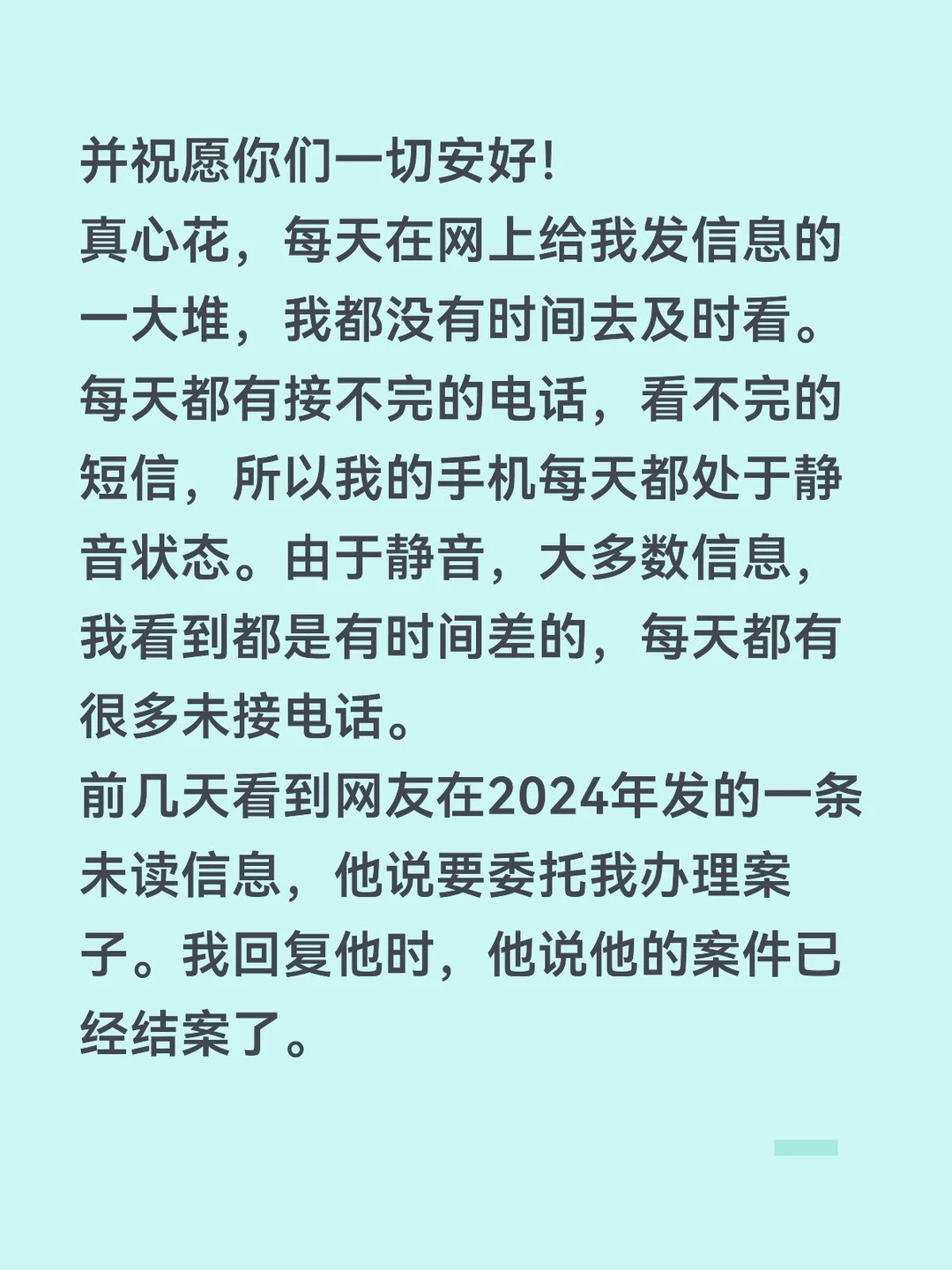 前几天看到网友在2024年发的一条未读信息,他说要委托我办理案子。我回复他时,他说他的案件已经结案了。