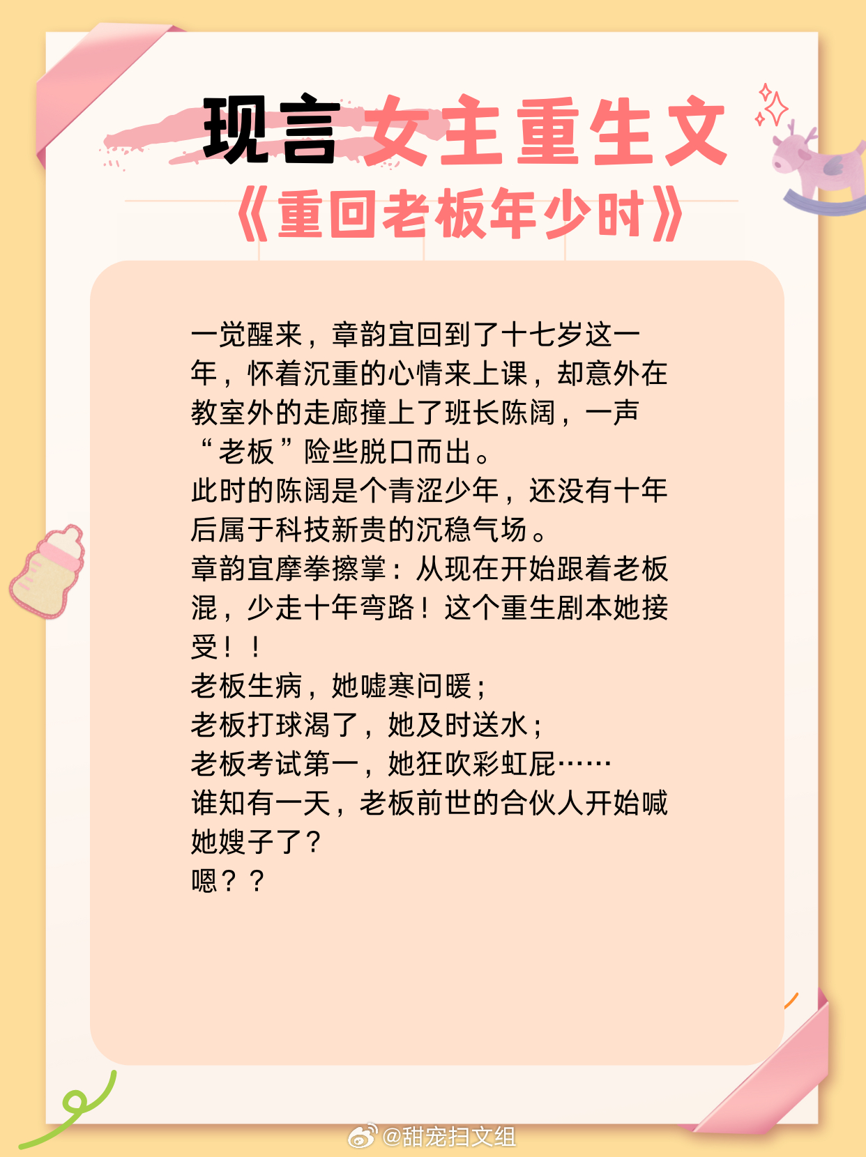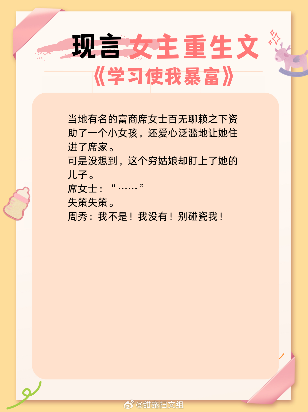 现言女主重生文,重活一世,搞学习搞事业,奋斗逆袭,弥补遗憾!有怨报怨,有仇报仇!1.《重回老板年少时》 作者:林绵绵2.《今晚不营业》 作者:何甘蓝3.《誓不做玩物》 作者:大吉大利4.《亲爱的爱情》 作者:兰芝5.《学习使我暴富》 作者:素昧平生6.《另类大师》 作者:花鸟儿兜兜转转还是这些小说好看 这本小说超绝