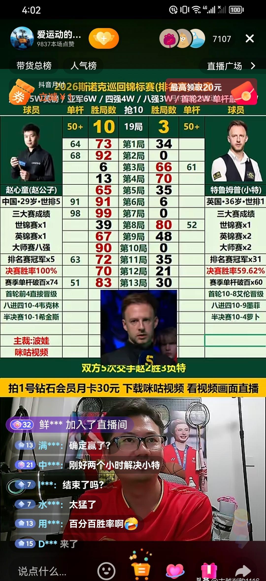 贾德·特鲁姆普的团队把庆功宴菜单发到群里,赵心童用五连鞭把桌子掀了。 赛前,小特说,我从不被横扫。 外媒列了个名单,说赵心童是红包赛历史上最水的选手。 网友等着看笑话,说中国选手就是来陪跑的。 下半场开始,比分是5比3。小特坐在椅子上,擦了擦杆头。 赵心童走上去,开球。 第一局,他打了单杆80分。 小特没起身。 第二局,赵心童又打了单杆90分。 小特还是坐着。 第三局,赵心童清台。 小特喝了一口水。 第四局,赵心童没给小特留机会。 第五局,赵心童直接超分。 比分变成10比3。比赛结束。 小特赛后接受采访。 他说,我连做斯诺克的机会都没有。 解说员在直播间说,这是单方面的羞辱。 网友不说话了。 赵心童包揽了本赛季三大红包赛冠军。 冠军联赛,他拿了3万3千英镑。 球员锦标赛,他拿了12万5千英镑。 巡回锦标赛,他拿了15万英镑。 加起来超过30万英镑。 小特这个赛季打了那么多排名赛,奖金还没他高。 现在没人敢说红包赛水了。 奖金摆在那里。 成绩摆在那里。 赵心童没回应过外媒的评价。 他打完比赛,收拾球杆,走了。 庆功宴的菜单还在群里,但没人再提。 桌子已经掀了,菜上不来。 普通人被老板骂两句就摆烂,他被几千万人看衰了五年,一局一局把面子挣了回来。 说到底,在真金白银面前,所有的嘴炮连个响都听不见。