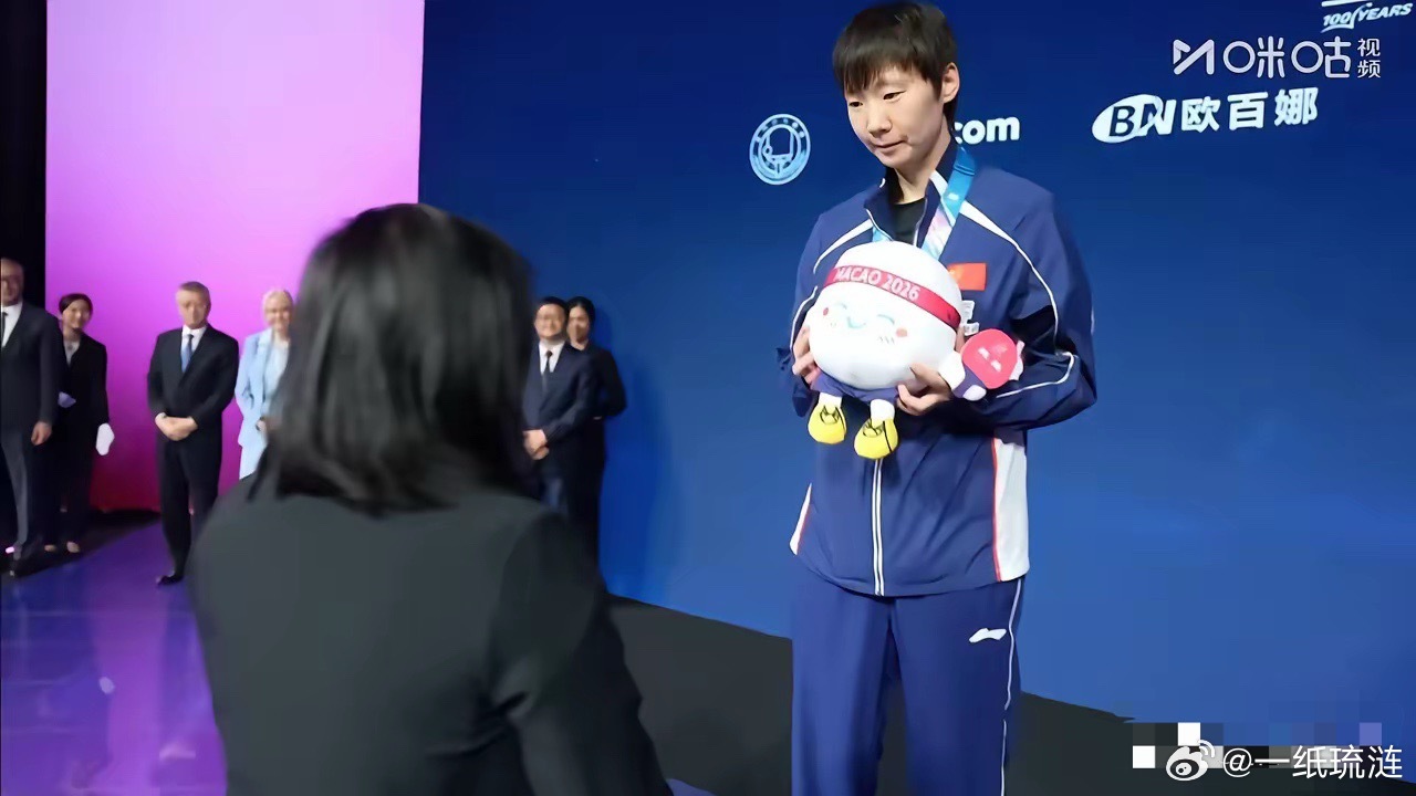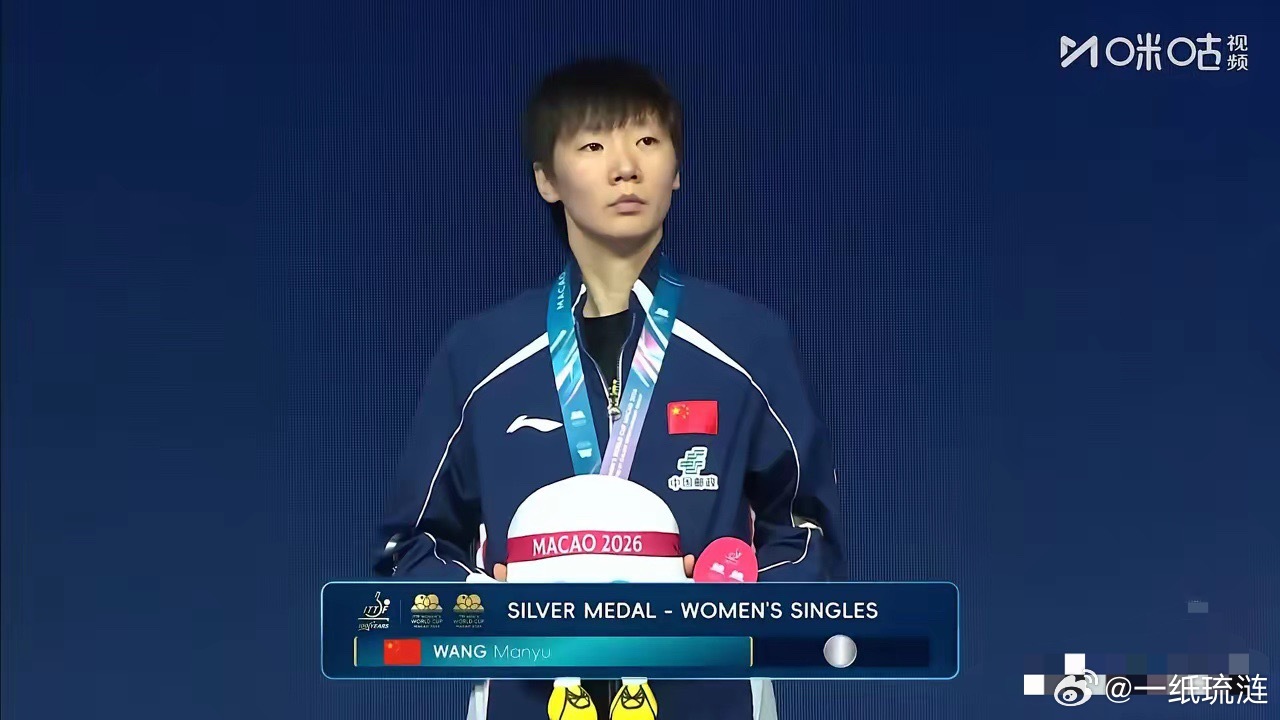 站在澳门世界杯女单亚军领奖台上的王曼昱,全程平静从容,不管是握手还是合影,都落落