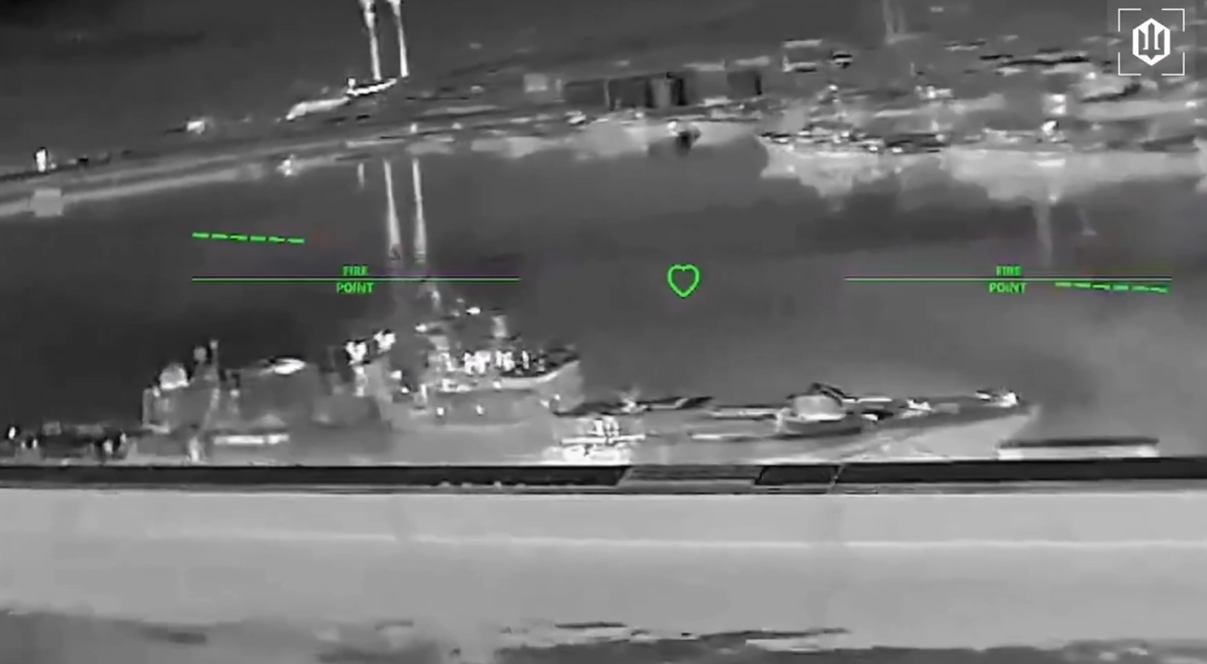 乌军新发布的无人机视频显示,停泊在新罗西斯克港的俄军一艘11356R型护卫舰遭到