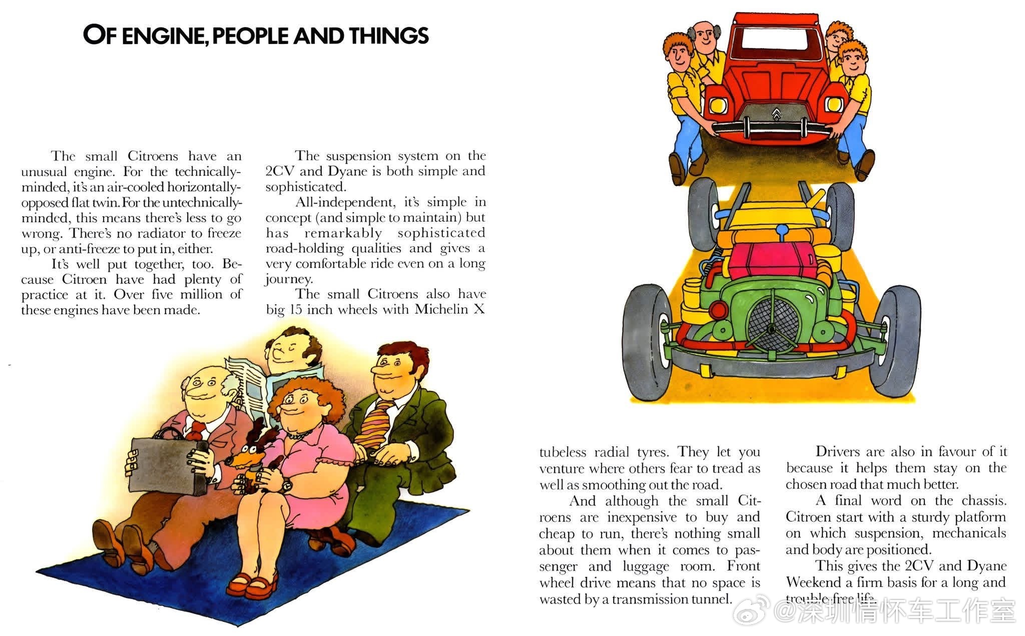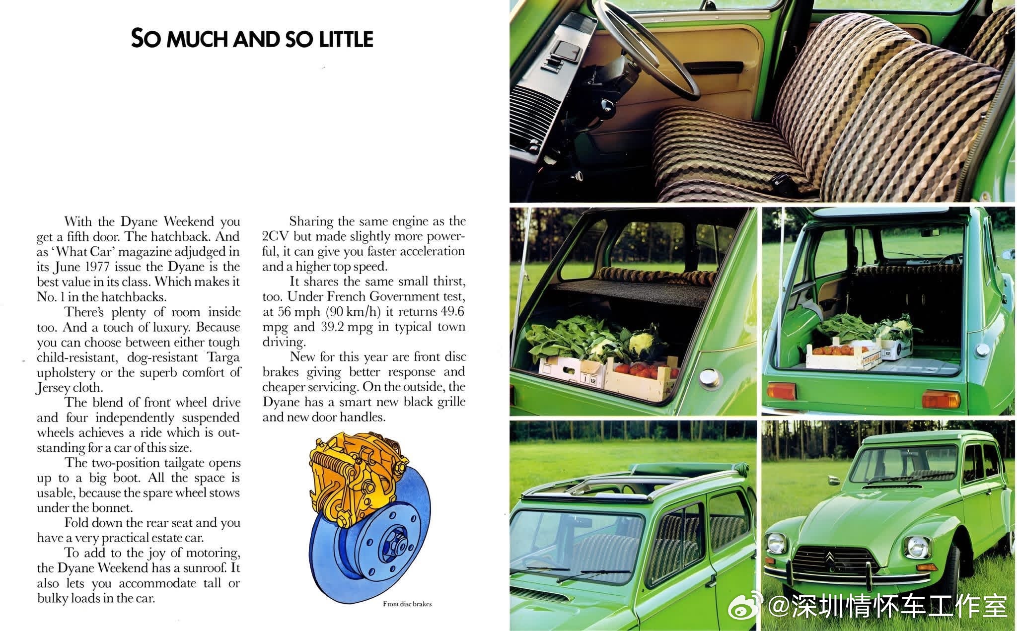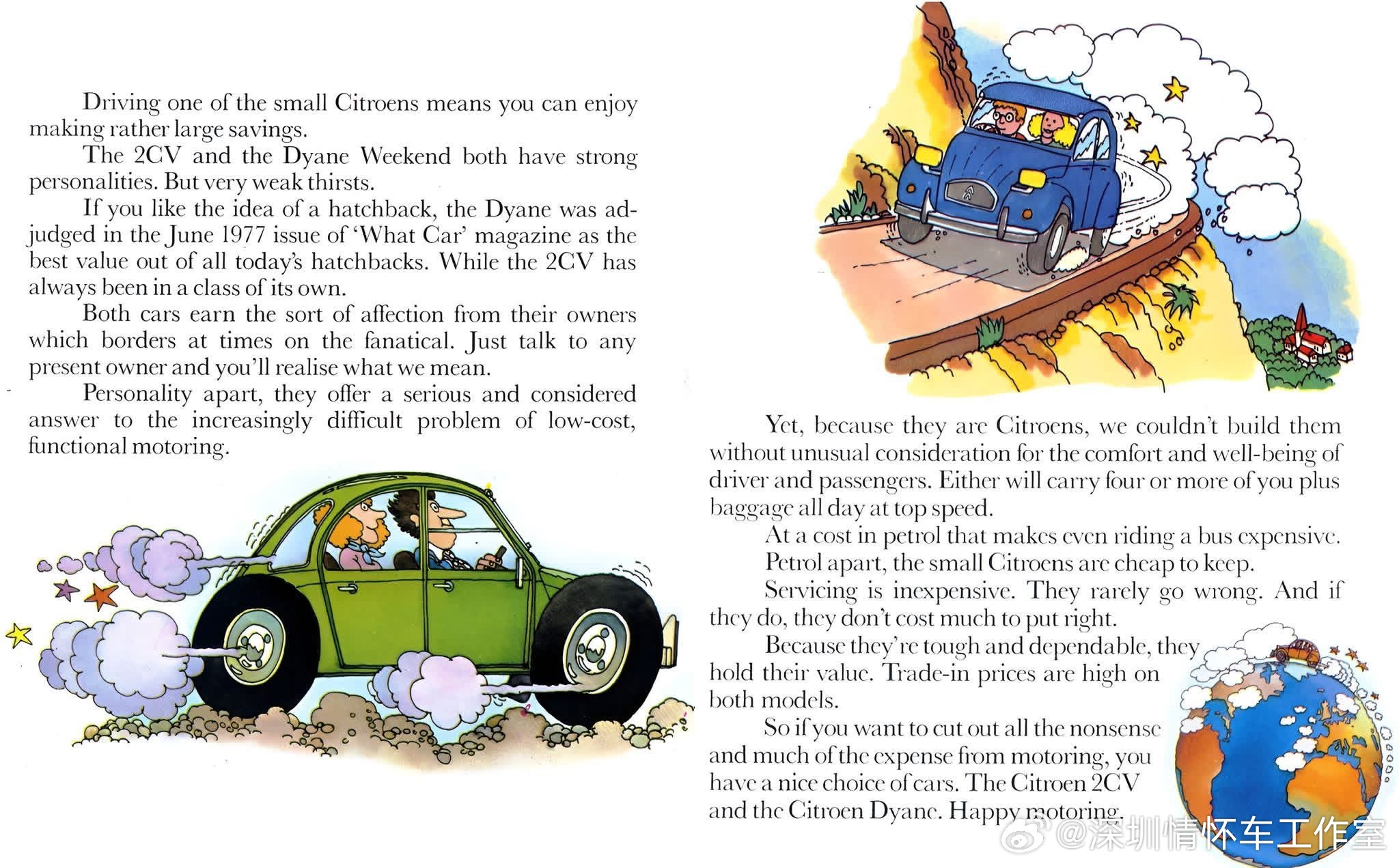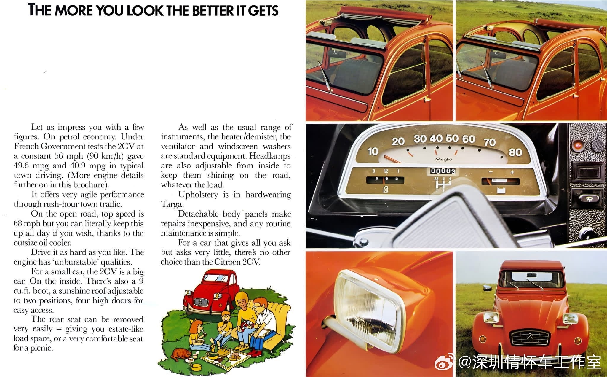 法国国民车,雪铁龙 2CV(1948–1990),Dyane是2CV的现代化升级款,定位略高于2CV。雪铁龙2CV(法语:Deux Chevaux,意为“两匹马力”),是法国雪铁龙的国民级微型车。定位:极致廉价、耐用、能走烂路的家用/农用小车。设计目标:载4人+50kg货物,过田埂不颠碎一篮鸡蛋,油耗<3L/100km。创造的历史1. 战后法国全民汽车化◦ 1948巴黎车展亮相,排队3–5年才能提车。◦ 让法国农民、工人第一次买得起汽车,彻底改变法国乡村生活。2. 工业设计经典“丑小鸭”外观成为20世纪极简设计icon,实用主义巅峰。3. 超长生命周期生产42年(1948–1990),总产量超511万辆(含厢式版超880万)。4. 文化符号学生、嬉皮士、艺术家的最爱;007《最高机密》等电影明星车。5. 越野/拉力奇迹悬架极强,完赛巴黎—喀布尔—巴黎(1.65万公里)、非洲拉力赛。雪铁龙经典老车