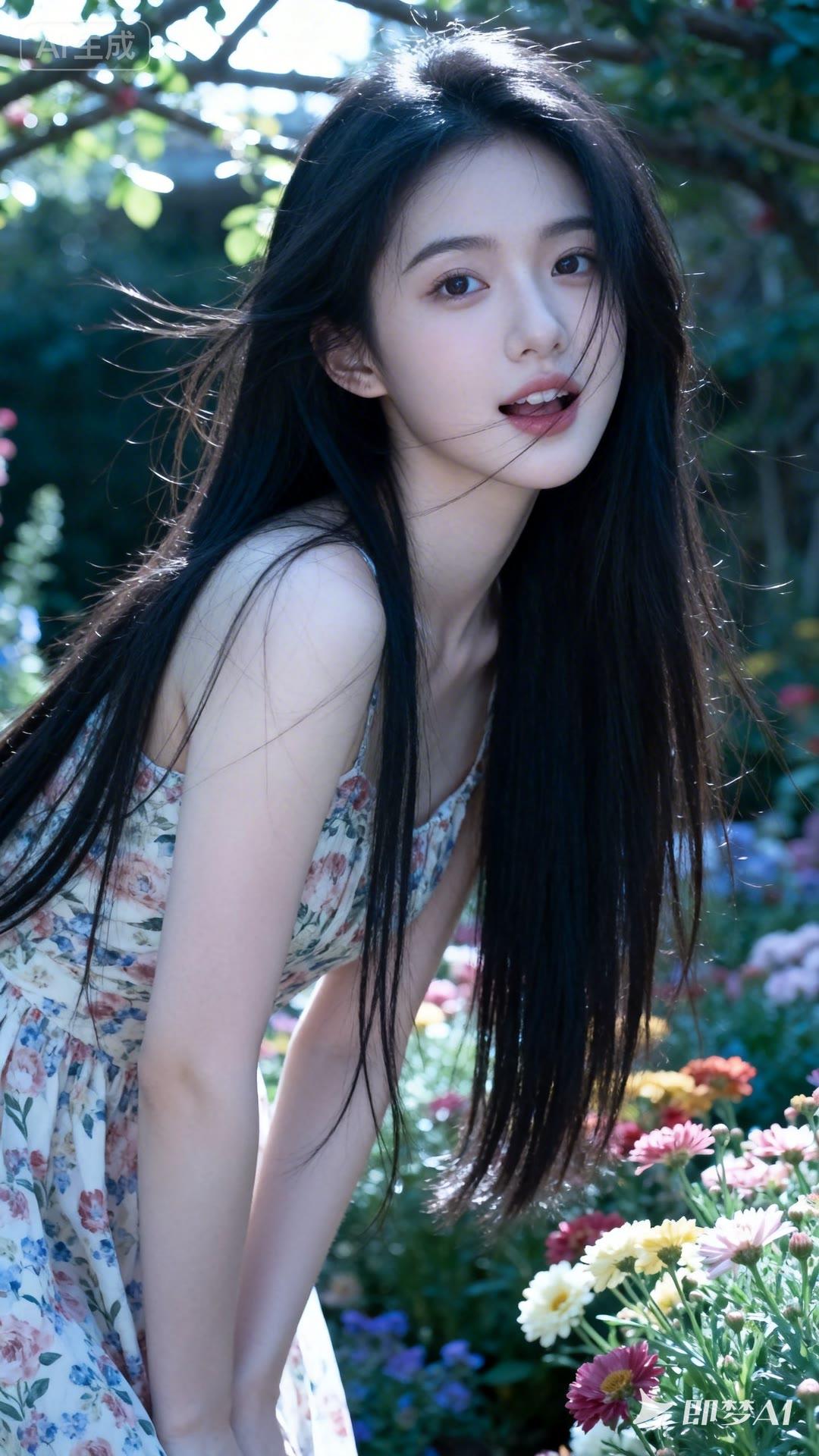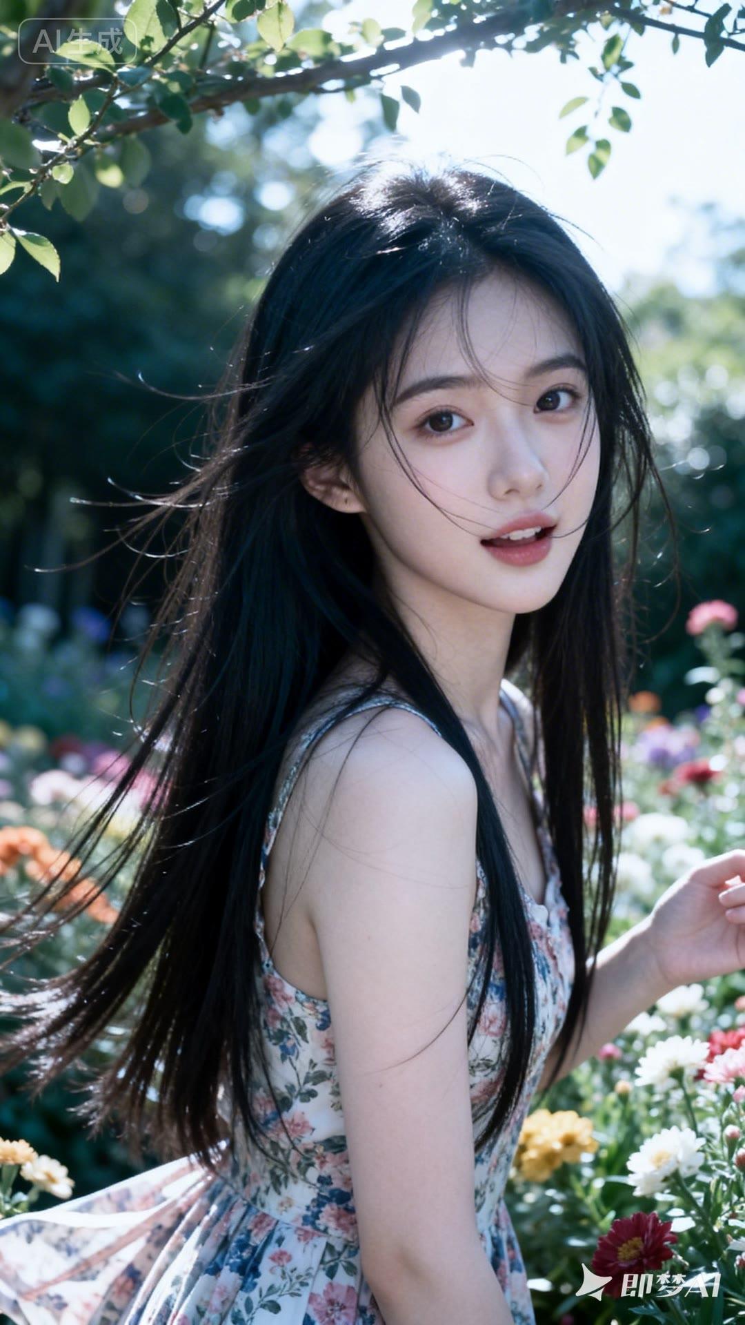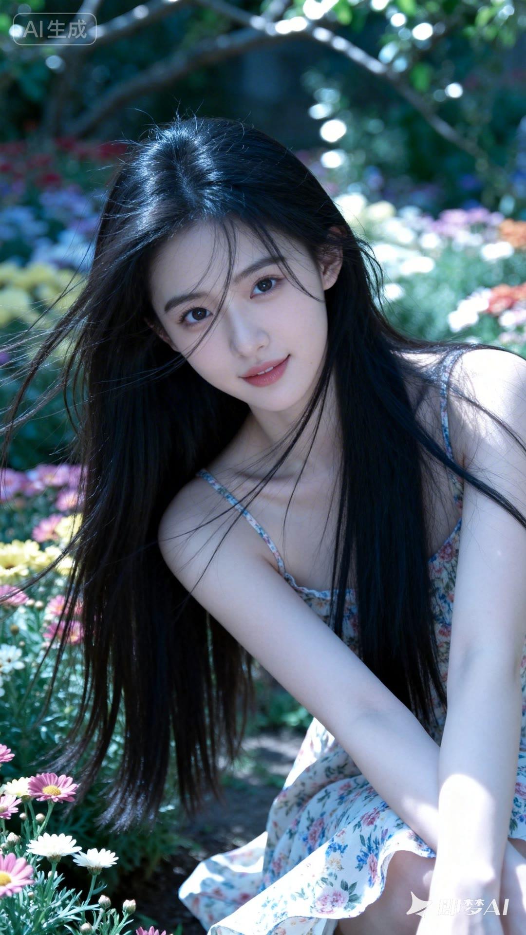 阳光下的花海,少女与自然的完美融合。