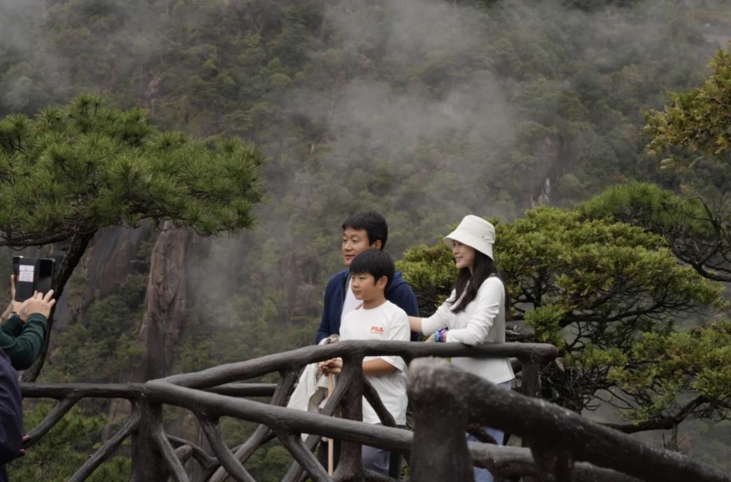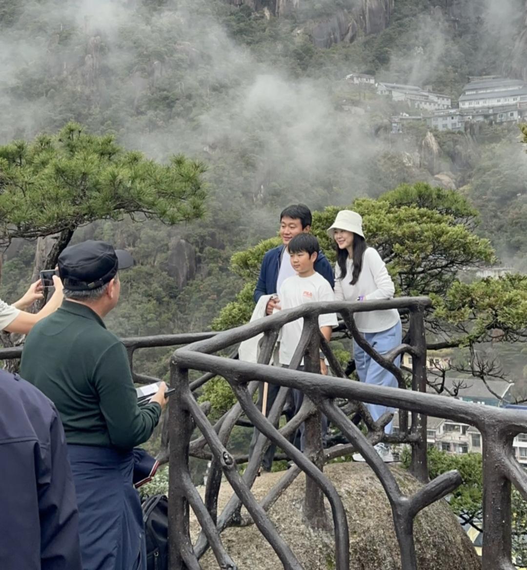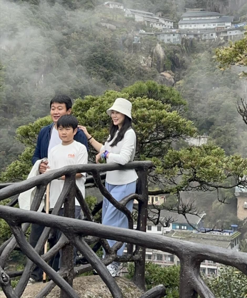 佟大为和老婆关悦带9岁儿子现身江西省三清山风景区游玩,47岁关悦还是那么漂亮,虽