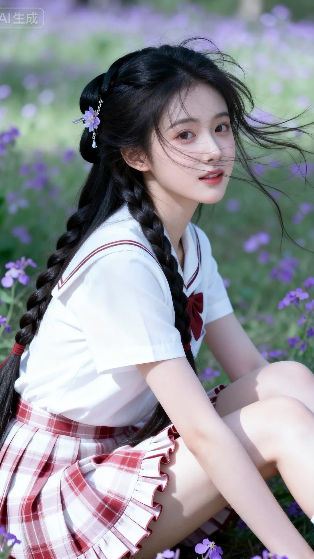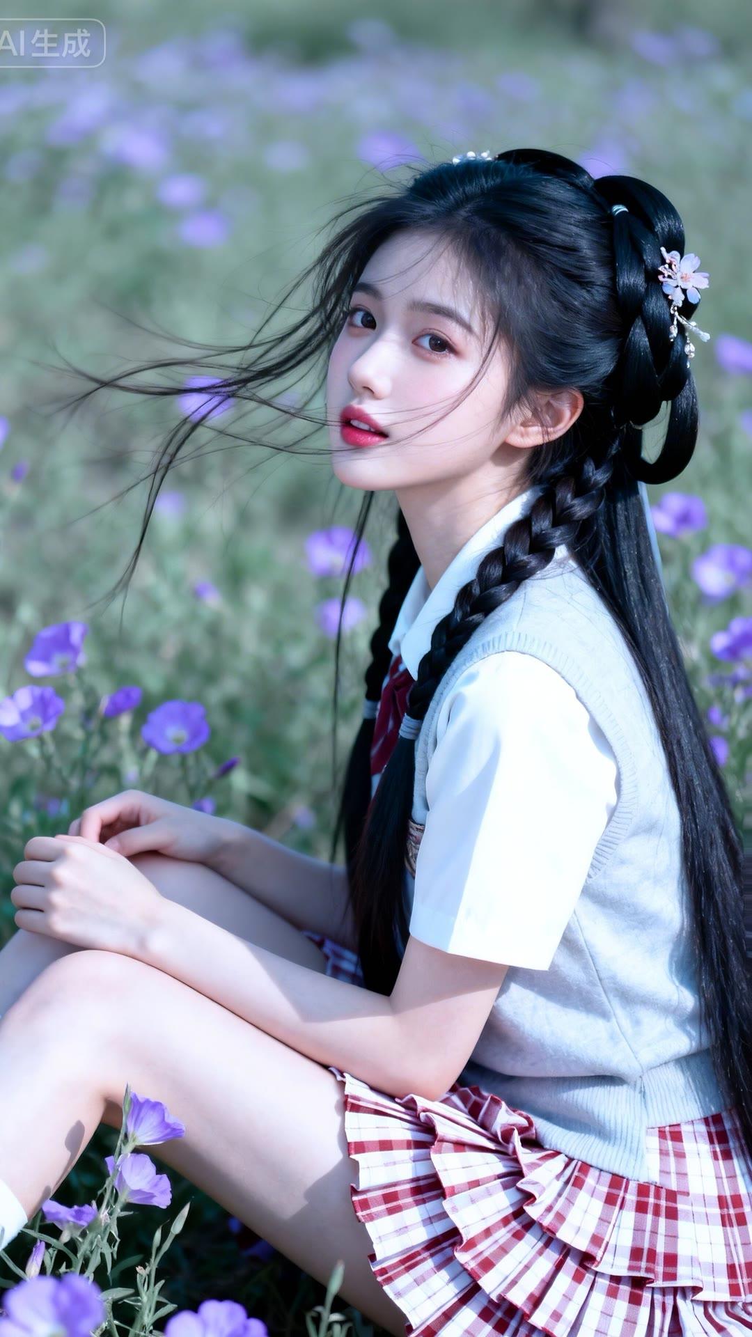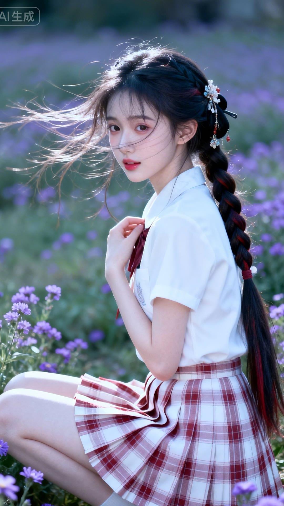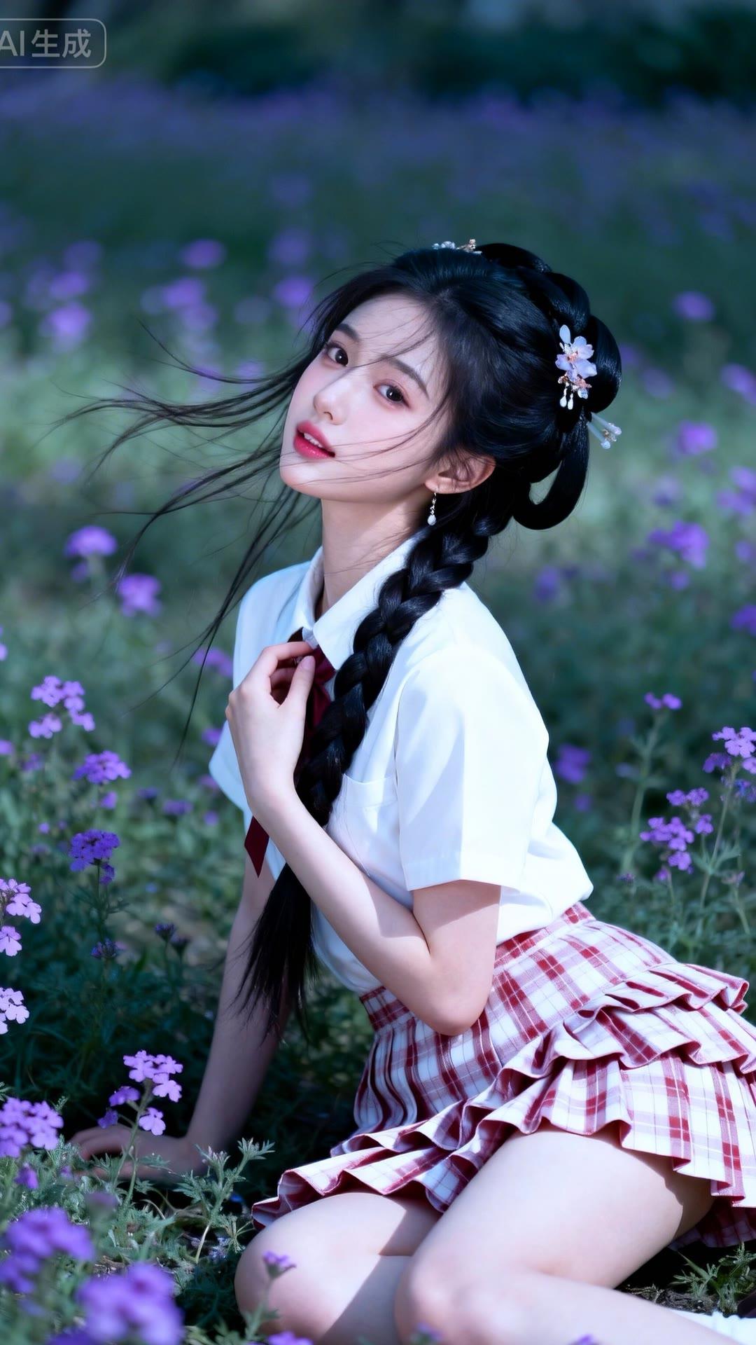 少女在花海中,甜美如梦,裙摆飘逸,宛如童话中的公主。