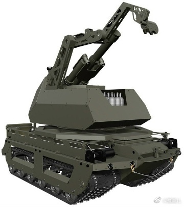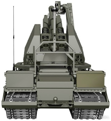 安装在俄罗斯信使地面机器人平台的Bagulnik-82自状态迫击炮模块专利的图像。