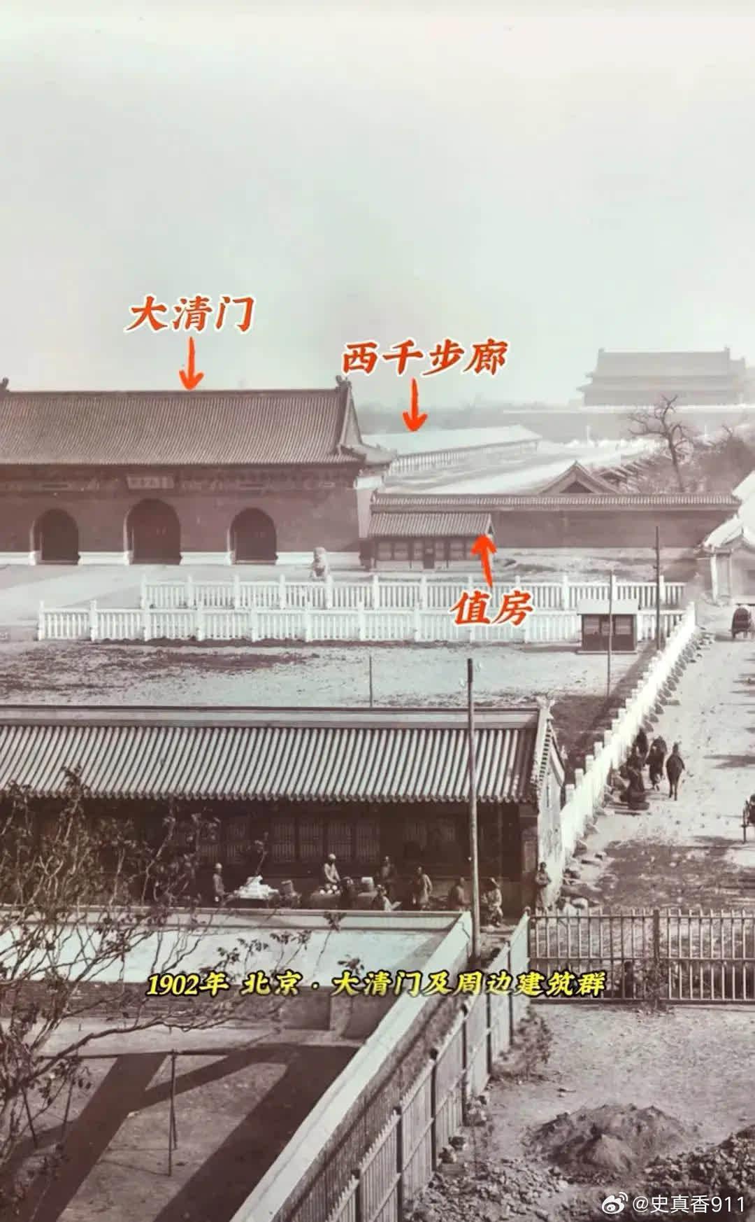 1902年时北京紫禁城大清门一带的古建筑。珍贵的老照片历史