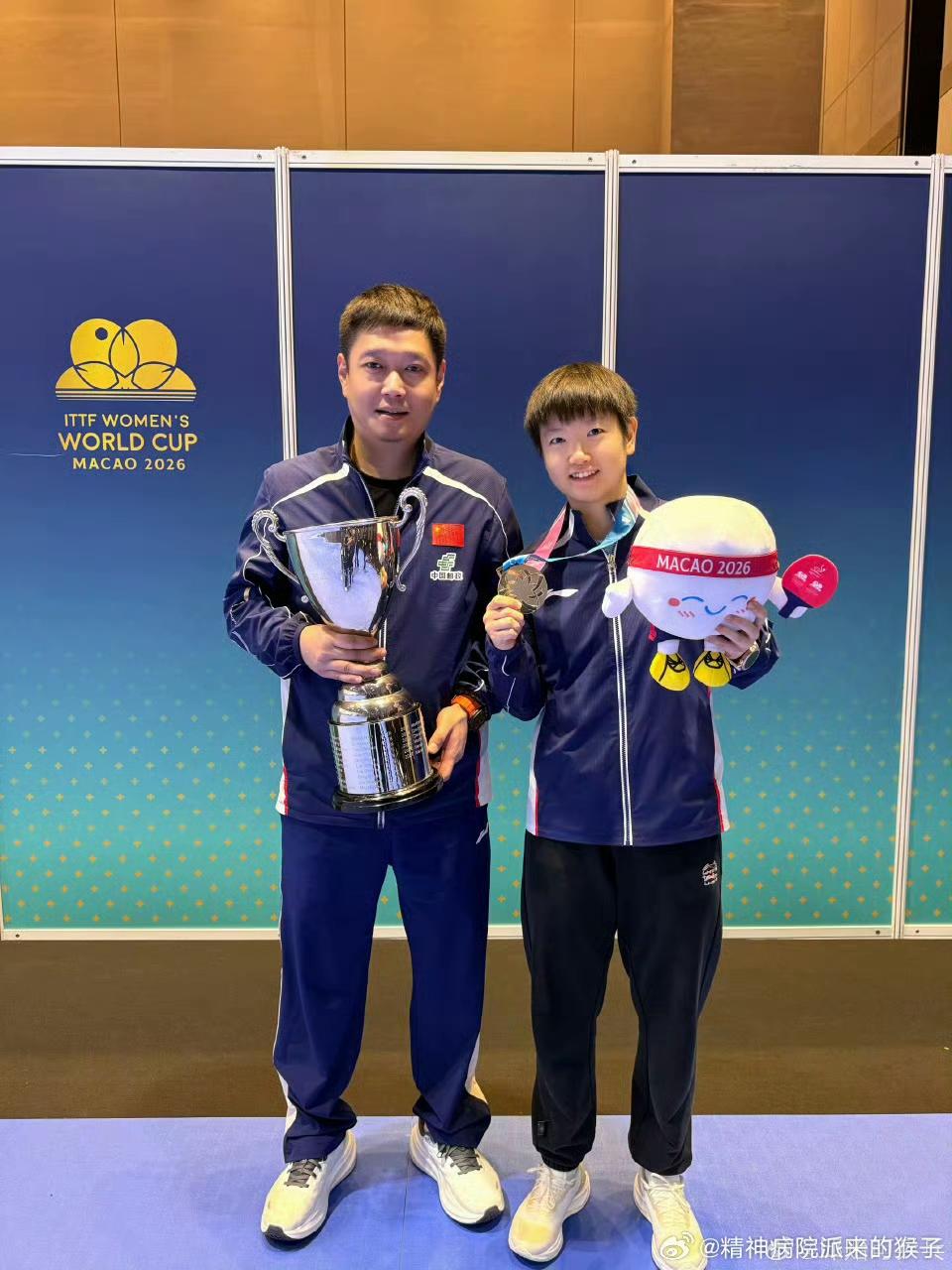 邱怡可指导分享了和孙颖莎的澳门世界杯夺冠后合影! 孙颖莎是个懂得感恩的孩子,每每会在网上看到孙颖莎把奖牌挂到邱指导脖子上的照片。 邱指导也是个尽心尽力关心莎莎、执教能力强的教练,莎莎三连冠的获得一定凝结着邱怡可指导的汗水。 师徒两人一路走来有艰辛有收获,感谢师徒两人为国争光,请继续你们的同行,继续坚定自信,全力以赴!加油邱指导[大笑][大笑]!