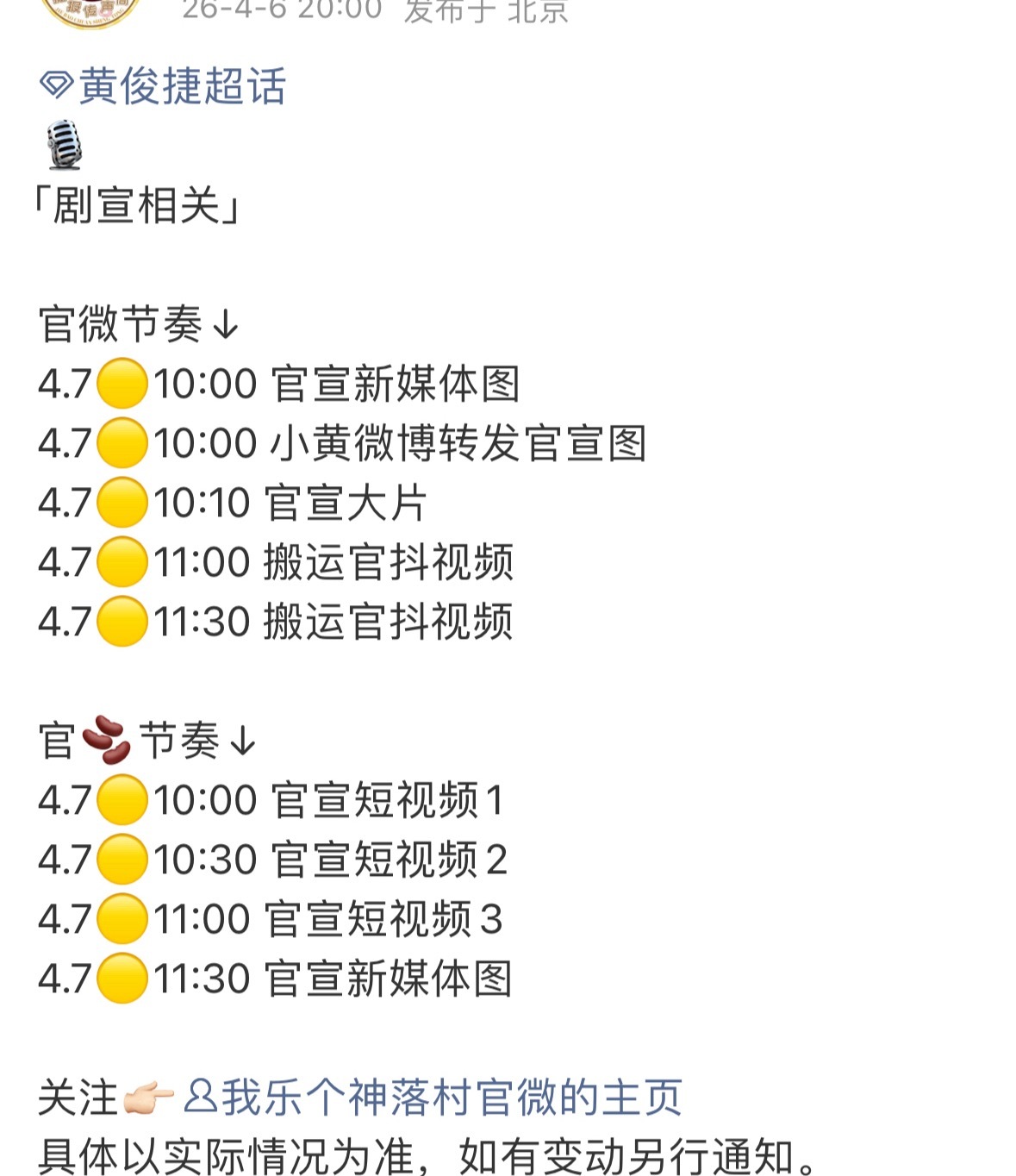 黄俊捷新剧我乐个神落村明天官宣哦🈶