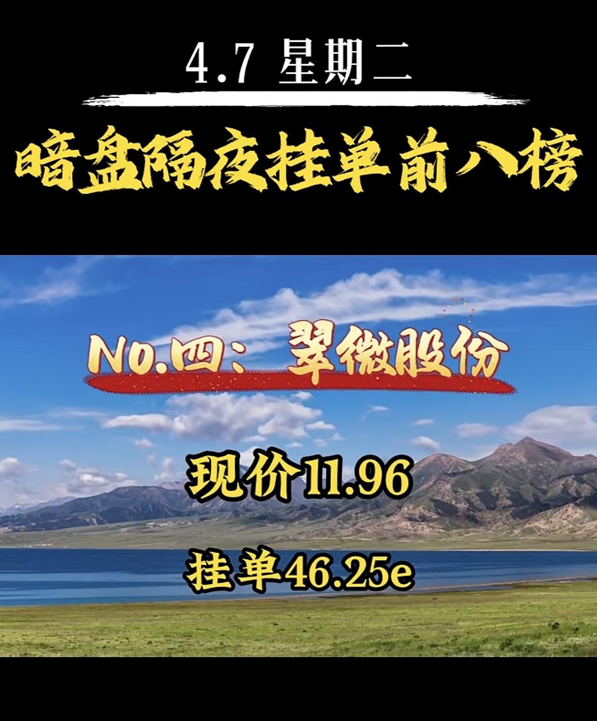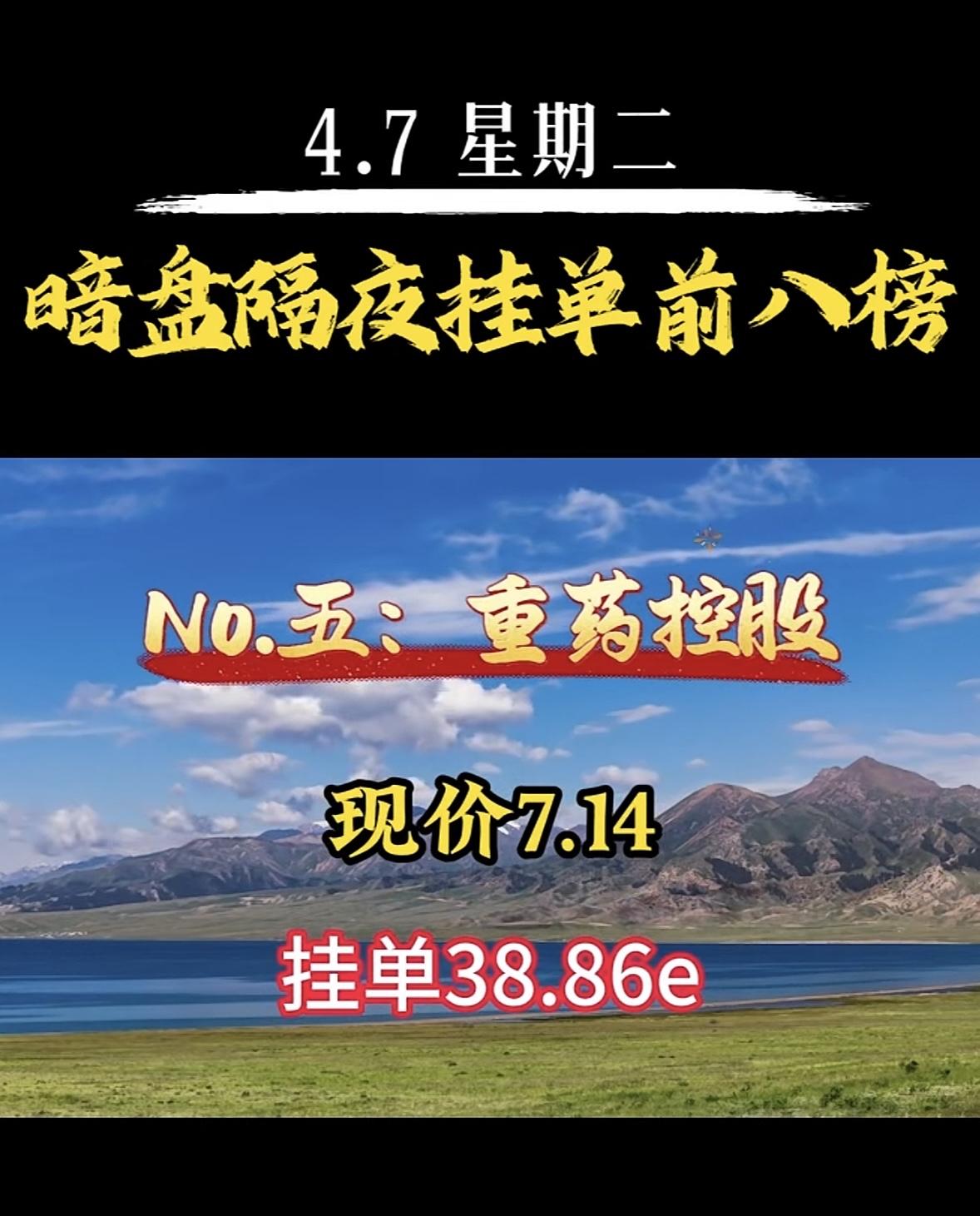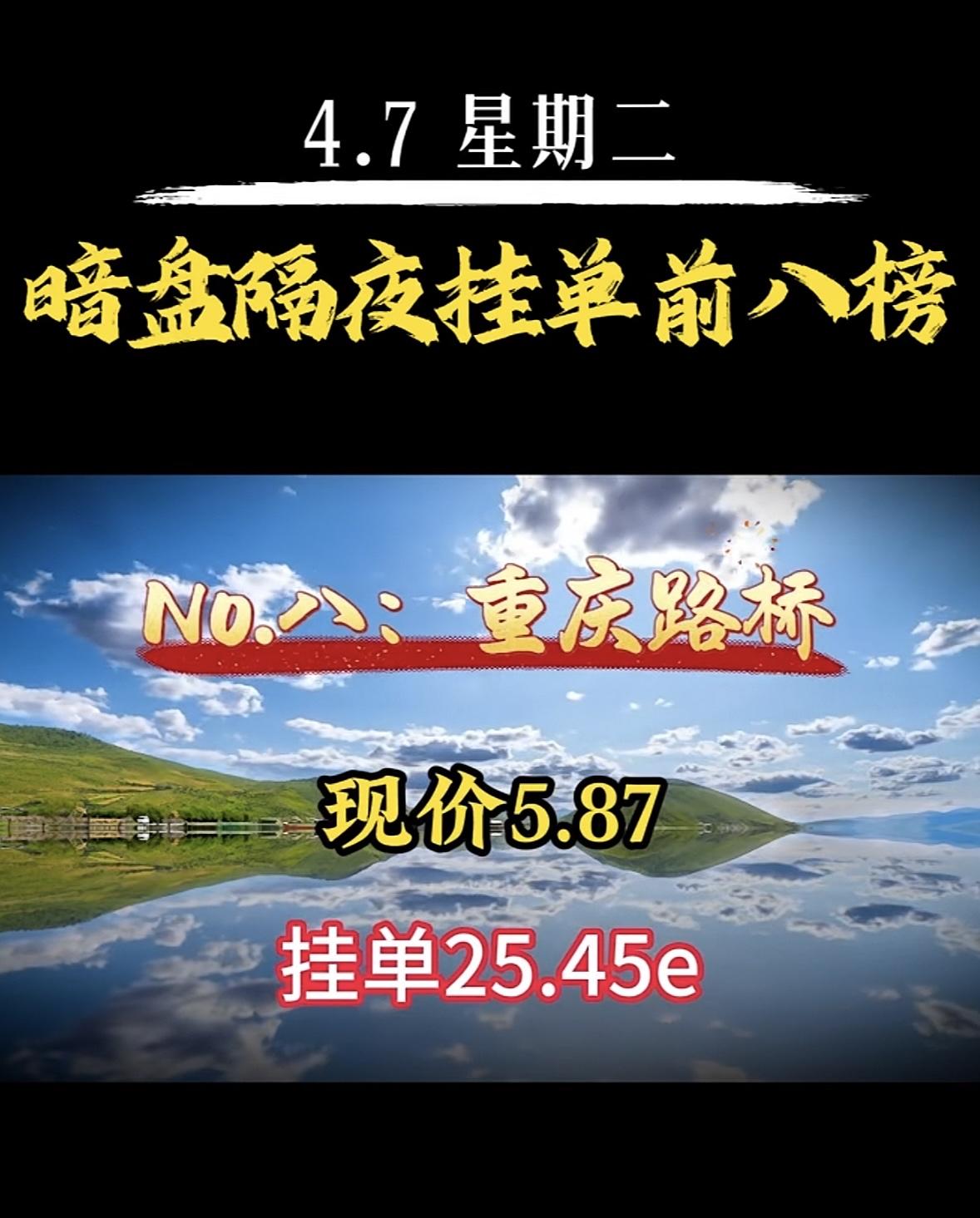 4月7日周二暗盘隔夜挂单排行榜揭晓 暗盘隔夜挂单前八榜里,重庆路桥很是惹眼,现价5.87元,挂单竟达25.45亿。从数据看,它今日涨停,涨幅9.93%,开盘5.34元,最高到5.87元,成交量36.8万手,成交额2.1亿。近期融资买入情况也较活跃,像2月27日获融资买入2042.24万元。不过股吧里看法不一,有人觉得庄家筹码不够不肯拉,还有人吐槽它波动像杂技。这么大的挂单量,后续走势会怎样呢?是继续上扬还是另有变数,值得关注。