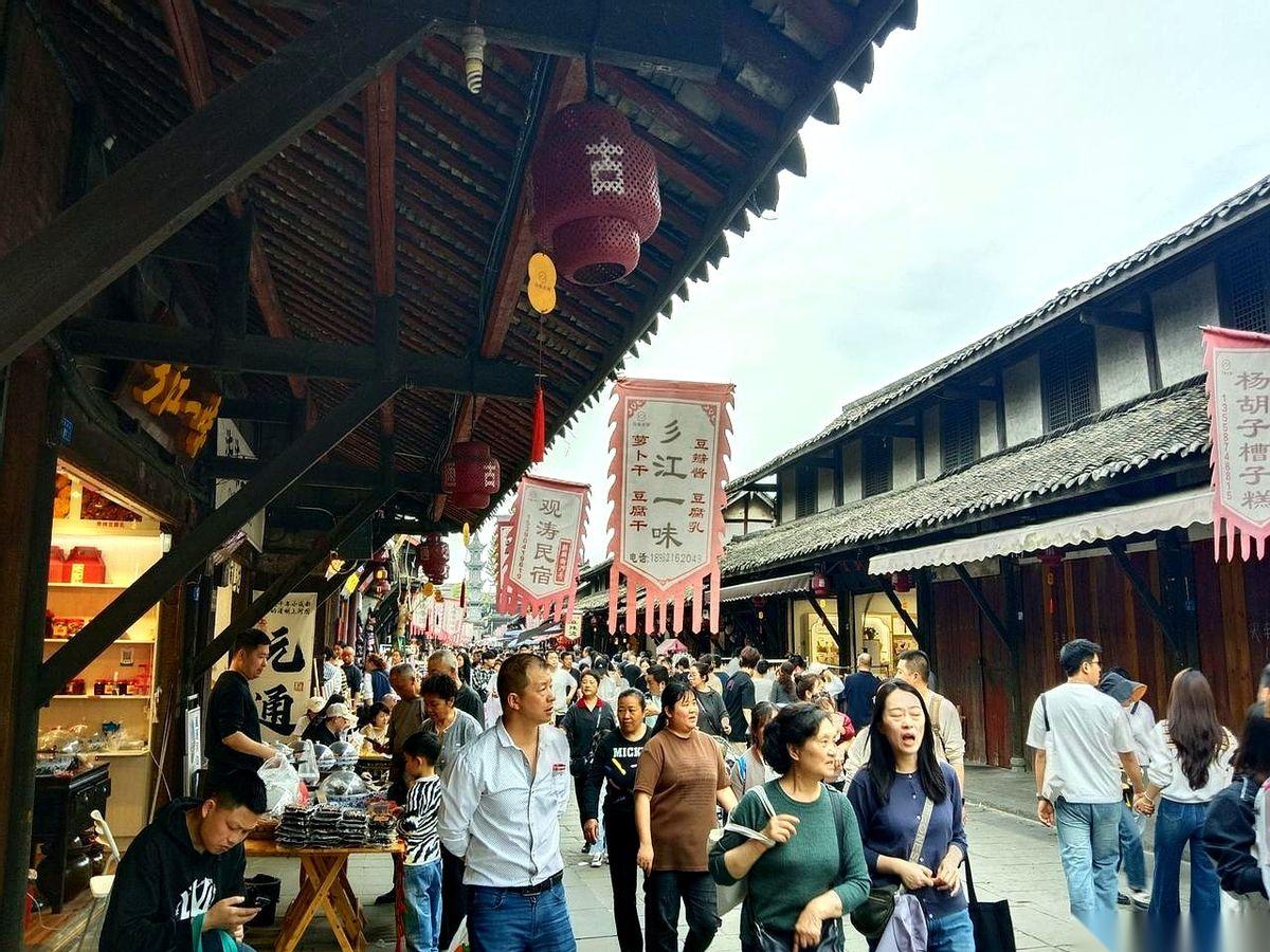 清明假期,晚上六点!元通古镇大门口,人潮还在往里挤,根本就没有要散的意思。 我手里的包被后面的人猛地带了一下,差点甩出去。身旁孩子的尖叫声,混着沿街小贩的吆喝,硬生生把整个古镇给煮沸了。路边的石板湿漉漉地反着灯光,脚下全是磨得发亮的石阶。 每个摊位前都围着好几圈人,想凑近看一眼都难。烤豆腐的烟子把空气熏得发白,排队买糖画的队伍拐了两个弯,前面的人踮着脚尖,后面的人伸着脖子。 我努力挤过一个又一个摊位,每一步都得小心翼翼,生怕踩到别人,也怕被别人踩。那感觉就像被扔进了一个巨大的、缓慢移动的罐头里,想出去,却发现四面八方都是墙。 抬头看,头顶的灯笼密密麻麻,亮得刺眼。本来只想走走放松,结果变成了人体保龄球,一路都在闪躲。 说实话,这几年古镇去过不少,但真没见过哪个清明,晚上六点还能挤成这样。 你说,这是人变多了,还是古镇太好玩了?