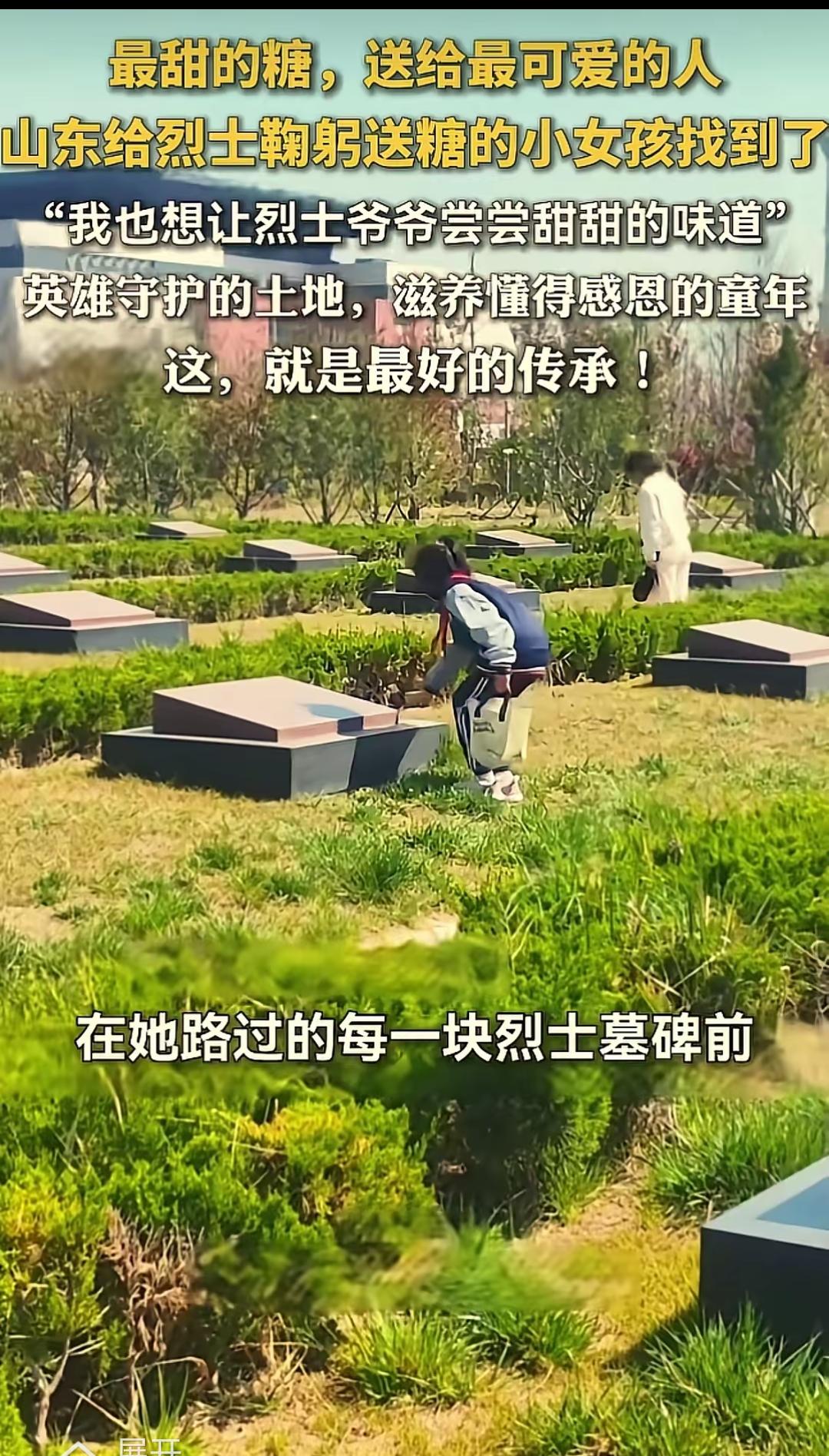 太暖心了!山东聊城,10岁女孩因错过学校组织的祭扫活动,执意和家人前往烈士陵园,本以为女孩只是简单祭拜一下,结果她从南边拜到北边,不但每座墓碑前鞠了三躬,还从袋子里拿出一样东西,特意放在了上面。 谁也没想到,女孩放的不是鲜花,也不是水果,而是她非常喜欢吃的东西。 根据大象新闻4月4日报道,这件让人感动又出乎意料的事,发生在聊城革命烈士陵园。女孩叫张诗涵,是东昌府区花园路小学四年级学生。4月1日学校组织祭扫,每班只有一个名额,她没选上。回家就央求父母,说一定要自己去一趟。 4月4日清明节当天,一家人专程前往。小诗涵用自己攒下的零花钱,买了最爱吃的高粱饴和椰子糖。她蹲在墓碑前,把糖果一颗颗摆好,轻声说想让烈士爷爷们也尝尝甜甜的味道。从南边到北边,她一座墓都没落下,每次都规规矩矩鞠三个躬。 这一幕被现场一位姓刘的先生拍下来发上网,视频很快刷屏。网友留言超过10万条,有人说这是最朴素的爱国教育,有人感叹孩子心里装着先辈。糖果价值不过十几块钱,但在陵园里,这份心意比花篮还重。 当地教体局工作人员告诉记者,学校平时每周都有红色教育课,会讲本地烈士故事。小诗涵的班主任说,这孩子作文里写过,长大了想当军人保家卫国。 烈士陵园管理方统计,清明期间入园人数比平时多三倍,不少家长专门带孩子来。像张诗涵这样自发来的小学生,今年登记的有47位。 孩子心里装着什么,眼里就能看到什么。张诗涵不懂什么大道理,但她知道甜的东西要分享给喜欢的人。这份纯粹的善意,比教科书上的字句更打动人。