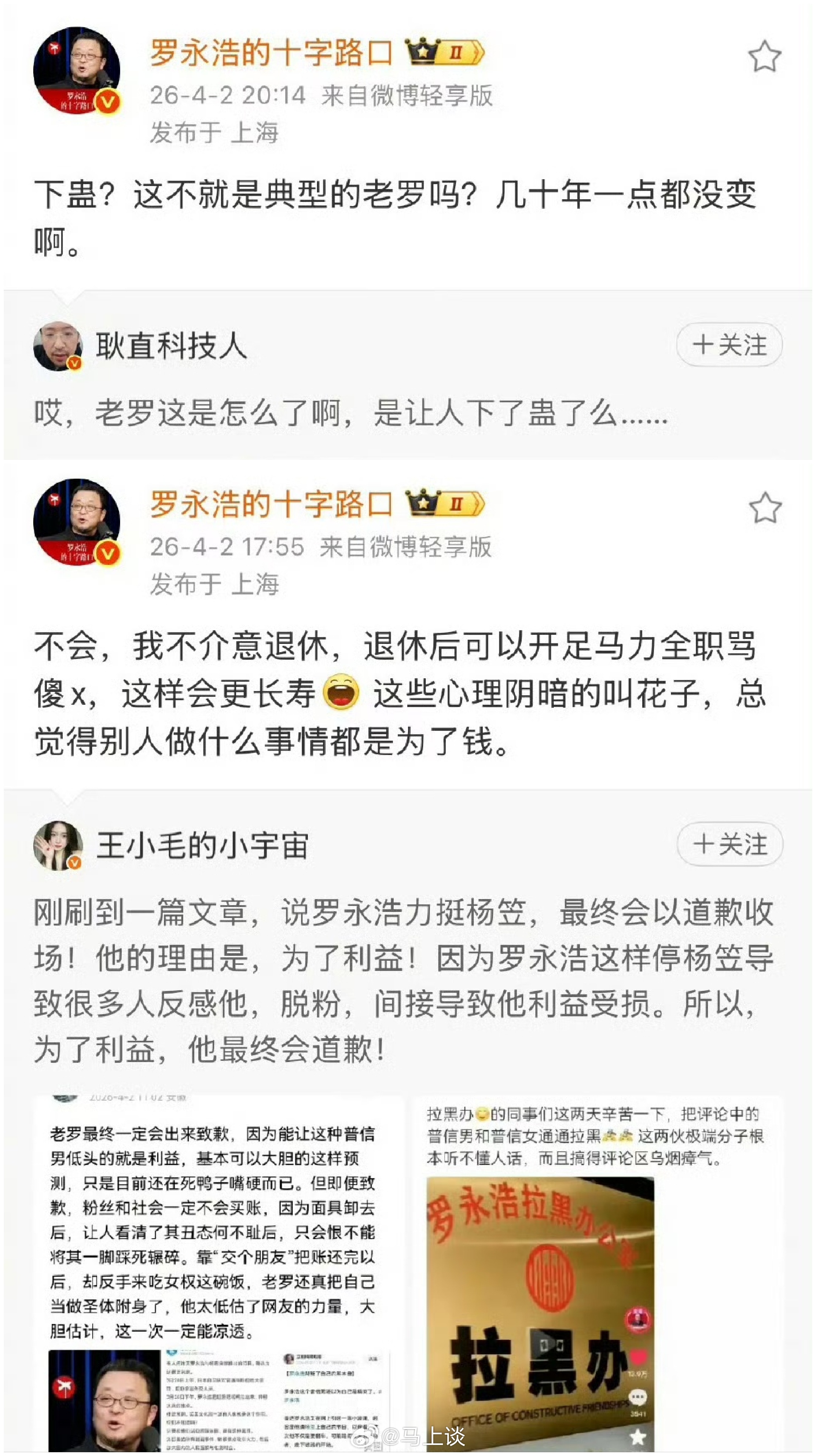 罗永浩真的认怂了!你看罗永浩最新的发文,就看得出,已经没有了之前的硬气,不再