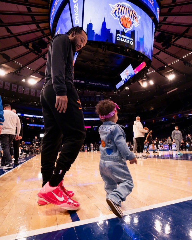 杰伦-布伦森最新科比PE鞋款Kobe 5 PE “Jordyn” 💕。球鞋图案和配色灵感来源于他女儿Jordyn的一件连体衣,鞋后跟上有Jordyn的生日(2024年7月31日)。