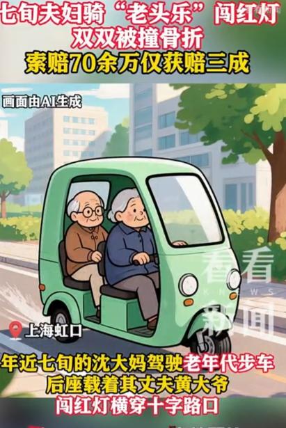 “谁弱谁有理?”上海,70岁老夫妻驾驶三无“老头乐”闯红灯,与正常行驶的轿车相撞,车祸致两位老人多处骨折,事后他们向车主以及保险公司索赔70余万元,可法院判决却引发了争议。