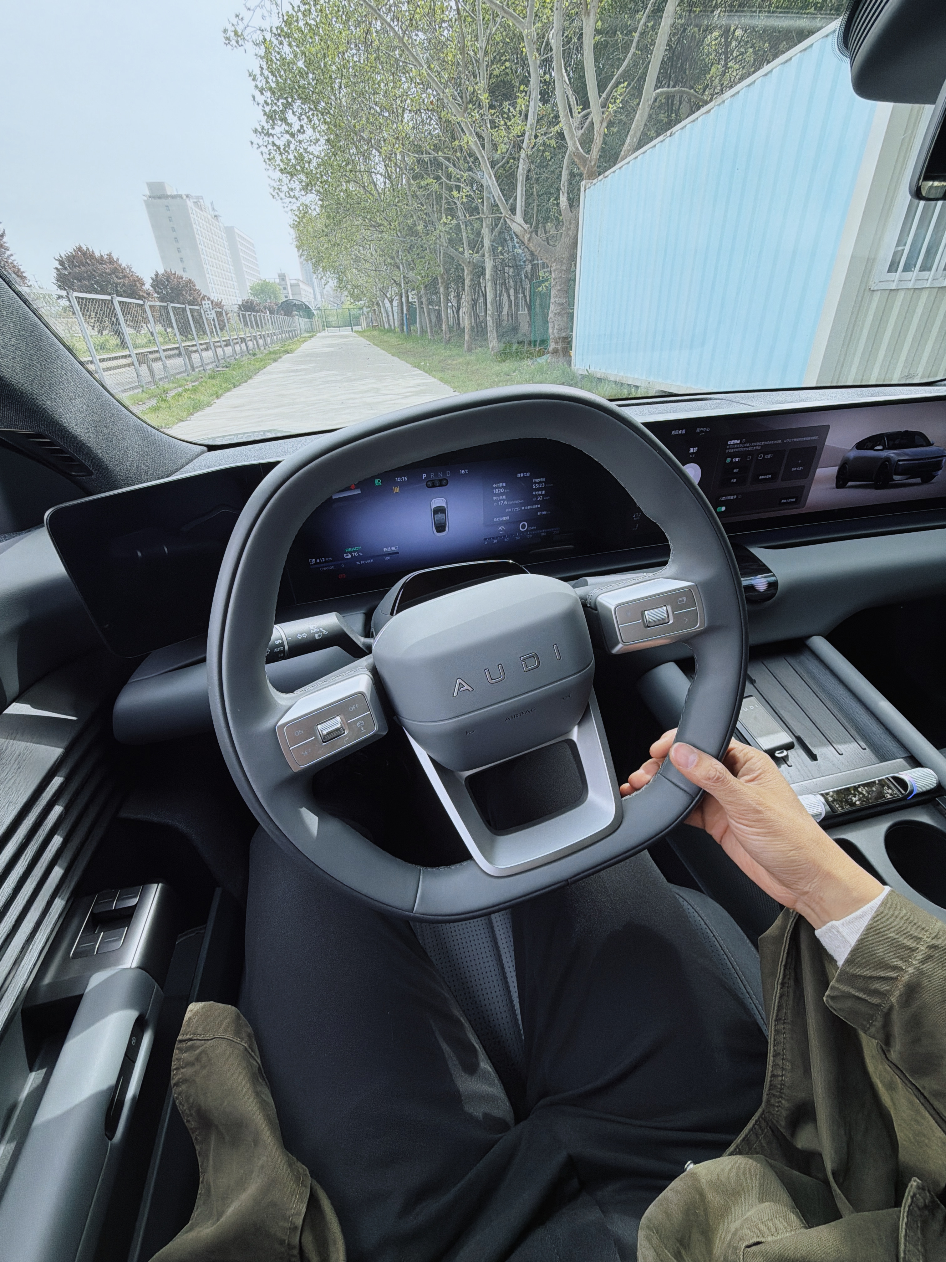 在测试场开了一下奥迪E5 Sportback,好看是真好看,尤其是这个屁股,我感觉超过了ET5t的颜值。关键是坐姿低。📮底盘上感觉做绕桩测试的时候并不是特别好,指向性。当然我这个是低配单电机两驱版,也没空气弹簧没Quattro。📮内饰上:1. 你注意这个横向的格子全是木头,使用量非常高,这是奥迪的新的设计语言。但在A6L E-tron上不是。2. 中控屏那块还可以手写字,低配版没有流媒体后视镜边缘屏是黑的。