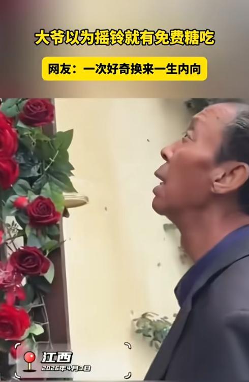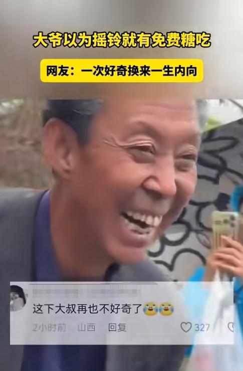 (信息来源:牡丹融媒《大爷以为摇铃就有免费糖吃.网友:一次好奇换来一生内向。》)