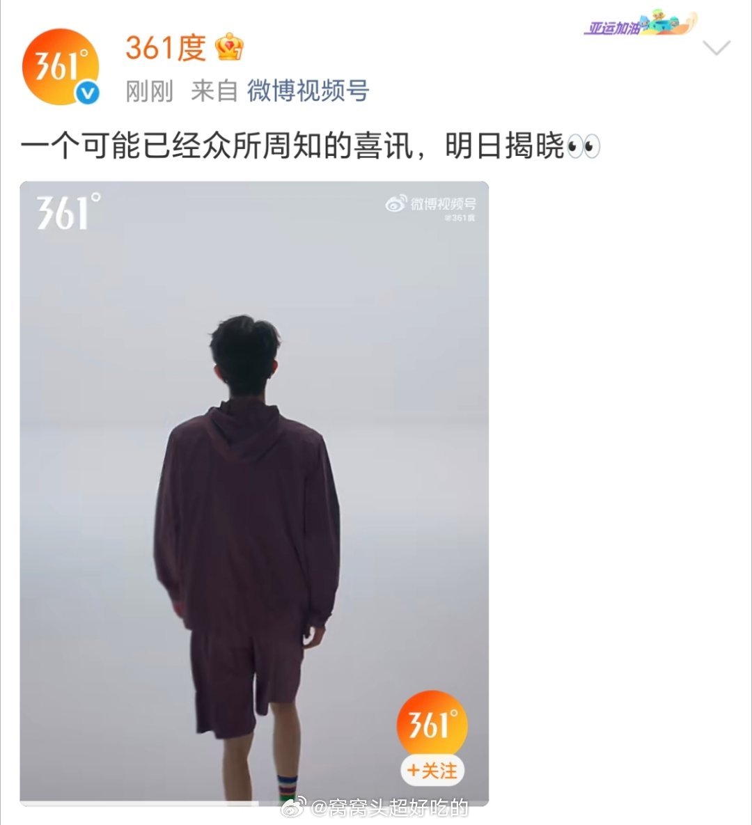 敖瑞鹏361度代言预热,品牌回签含金量👍