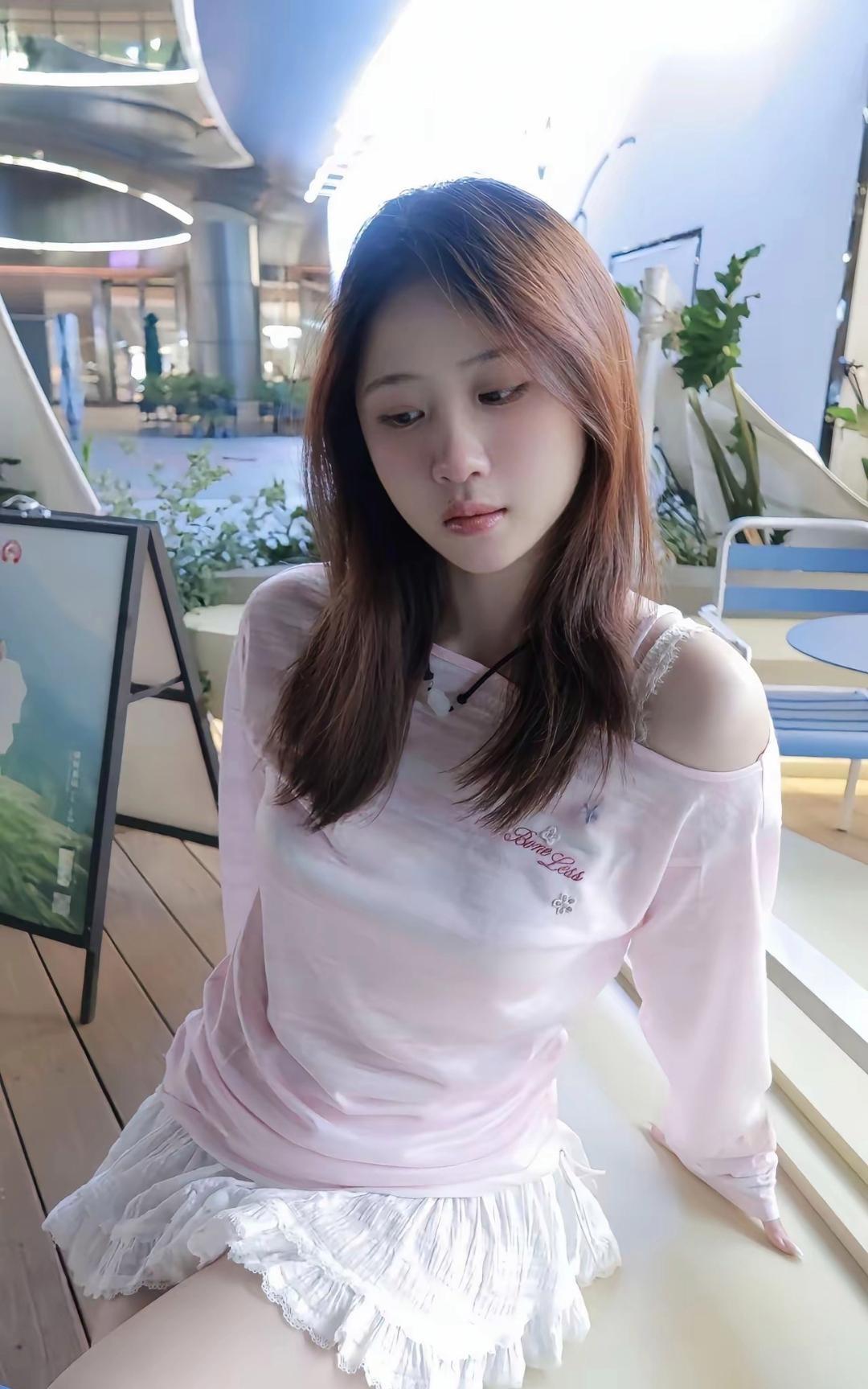 绝美清纯佳人,肤白如玉眸清似水,眉眼温婉长发飘逸,身姿曼妙曲线动人。简约雅致穿搭