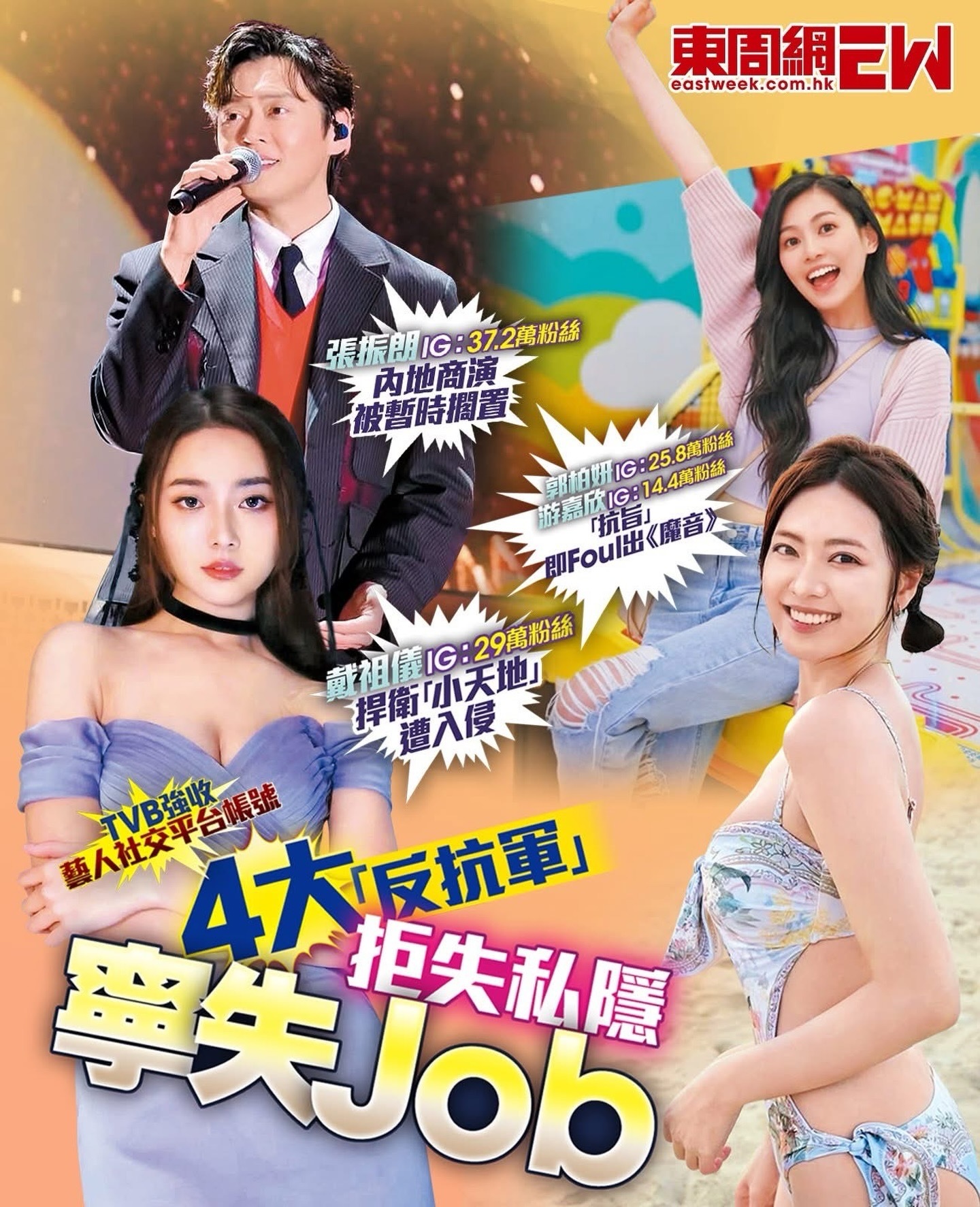 报道|TVB强收艺人社交帐号 《东周刊》独家爆张振朗戴祖仪拒就范 郭柏妍游嘉欣反