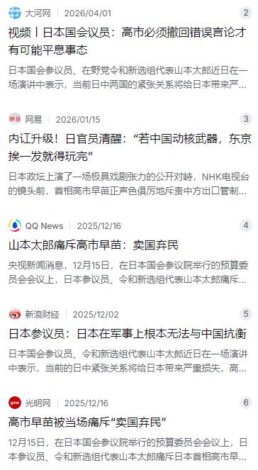 日本议员山本太郎在国会上公开表示:“以日本当前的实力,若与中国发生冲突,下场可能比乌克兰还严重。” 麻烦看官老爷们右上角点击一下“关注”,既方便您进行讨论和分享,又能给您带来不一样的参与感,感谢您的支持! 2025年底到2026年初,日本政坛出了个敢说真话的刺头——参议员山本太郎。这人在国会公开表态,说以日本现在的实力,要是跟中国动起手来,后果可能比乌克兰还要惨。这话一出,日本国内炸开了锅,有骂他卖国的,但也有不少人心里暗暗认可。因为在山本太郎之前,日本政坛的主流声音一直是右翼政客们高喊的所谓“台湾有事就是日本有事”、“日美同盟坚不可摧”。他这盆冷水泼下去,等于把日本当局“扩军抗华”的外衣扒了个精光。 山本太郎在会上直接摆出了一张巨大的图纸,画的是中国火箭军的打击范围。他用一张巨大的色彩图,一条鲜红的弧线从中国福建沿海直接划到了东京湾,上面清清楚楚标着“东风-16,射程1200公里,飞行时间7分钟”,“东风-26,射程4000公里,飞行时间12分钟”。意思是说,中国要打日本,根本不需要费什么劲,这些导弹七八分钟就能砸到东京头上。他甚至当场反问高市早苗政府:你们能有几个8分钟去疏散民众?连首相官邸埋在地下50米的所谓“最安全掩体”,他都不客气地说——那不过是个豪华棺材罢了。 日本作为岛国的地理短板是天生的,躲都没法躲。全国60%的粮食储备、70%的人口、80%的半导体产业和90%的炼油能力,全都挤在东京、名古屋、大阪这三个“高压气瓶”一样的核心地带,密集地挤在太平洋沿岸那条狭长的带上。山本太郎毫不客气地说,日本连最基础的“战略纵深”都没有,真打起来,连想往内陆撤一撤都做不到。他还拿俄乌战争做对比——乌克兰面积是日本的1.6倍,人口却只有一半,仗打到现在已经成了一摊烂泥,而日本的体量和容错率比乌克兰差远了。 再来看看日本那套昂贵的反导系统,面对朝鲜的导弹,实际拦截成功率都不到40%。碰上中国的高超音速导弹,这些拦截手段基本就是摆设。而中国手里的导弹总数超过3500枚,覆盖日本全境绰绰有余,甚至无需动用核武,只要让东京湾吃上一发常规弹头,整个日本的经济命脉和交通枢纽就会瞬间瘫痪。 比军事更致命的是经济命脉被人掐着。日本从中国进口的零部件和原材料涉及制造业的方方面面,仅从中国进口的零部件每年就价值1.4万亿日元,这些零部件支撑着高达53万亿日元的日本制造业产值。山本太郎在国会上打了一个非常扎心的比喻——就算不开战,只要中国停供两个月,日本这些工厂就得熄火,损失直接就是53万亿日元,经济打击一样会死人。他说得很直白,这不是什么制裁,这是供应链的自然窒息。 这里面最要命的一样东西是稀土。日本总体稀土进口依赖中国超过70%,而高端制造业必须使用的镝、铽等重稀土,日本几乎100%靠中国供应。全球超过90%的稀土精炼产能都在中国手里,日本就算从别国挖出原矿,也得送到中国来加工提纯。日本媒体去年还在大肆宣扬“在6000米深海挖到了含稀土泥巴”,山本太郎嘲讽说,这些深海泥巴距离产业化至少还要十年,拿这种东西说事,根本就是画饼充饥。 军工方面日本更是先天不足,作为一个二战战败国,脖子上至今还套着和平宪法这条锁链。反观中国,拥有从原材料到核心技术的完整自主产业链,国防预算是日本的三倍以上,这种差距根本不是靠增加几项军购就能弥补的。山本太郎一针见血地指出,日本政府唯美国马首是瞻,美军在其他国家的驻军还得遵守当地法律,唯独在日本横行霸道“不守规矩”,说到底,日本根本就是美国的殖民地。 山本太郎最猛烈的一轮炮火,对准的是首相高市早苗。在2025年12月15日的国会预算委员会会议上,他当着高市的面痛斥对方“卖国弃民”。高市早苗执政以来,一边削减国内民生开支,一边在国防上大把撒钱,还计划向美国输送巨额投资,美其名曰深化日美同盟。山本太郎指出,日本政府在日美贸易协定中计划向美国投资约80万亿日元,其中90%的利润最终都流进了美国人的口袋。 山本太郎还一针见血地指出,当前中日关系紧张的根源根本就不在中国。高市早苗在涉台问题上的一系列错误言论,背离了日本政府此前的官方立场,等于主动往中国设下的红线上踩。他把话说得很明白:纠纷越早解决越好,对方绝对不会轻易罢休,因为最初犯错的是我们这边,在我们收回错误言论之前,对方就不会停止批评。 山本太郎的立场非常明确:日本现在根本不是中国的对手,硬要跟中国碰,不是在维护国家安全,而是在拿整个日本的国运去赌。他直言不讳地说,日本的国运不能绑在美国的战车上,更不能绑在高市早苗的错误判断上。乌克兰的今天,就是摆在面前的警示牌,就看日本人愿不愿意睁眼看看了。