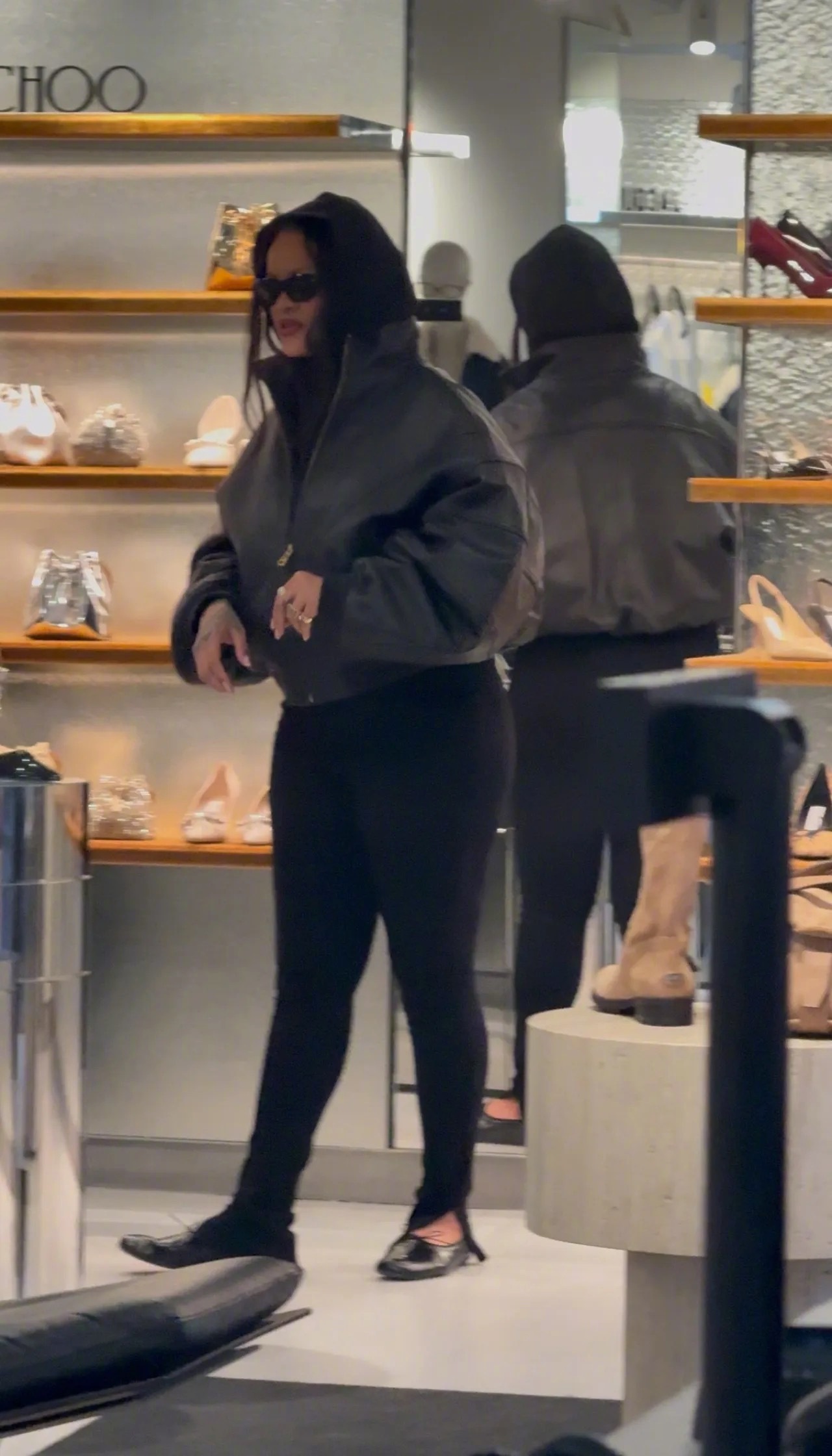 著名女企业家蕾哈娜现身巴黎 Jimmy Choo 购物被拍,挑到了一双金色高跟鞋,满意离开。,身穿WILLY CHAVARRIA黑色皮衣,手拿Dior 包包。企业家现在也不为自己的彩妆品牌带货了,查了一下LVMH正考虑出售其持有的50% Fenty Beauty股权,因为品牌当前的增长动力放缓了。据说北美销售已经不如以前,很多产品开始打折出售。米拉服饰解析