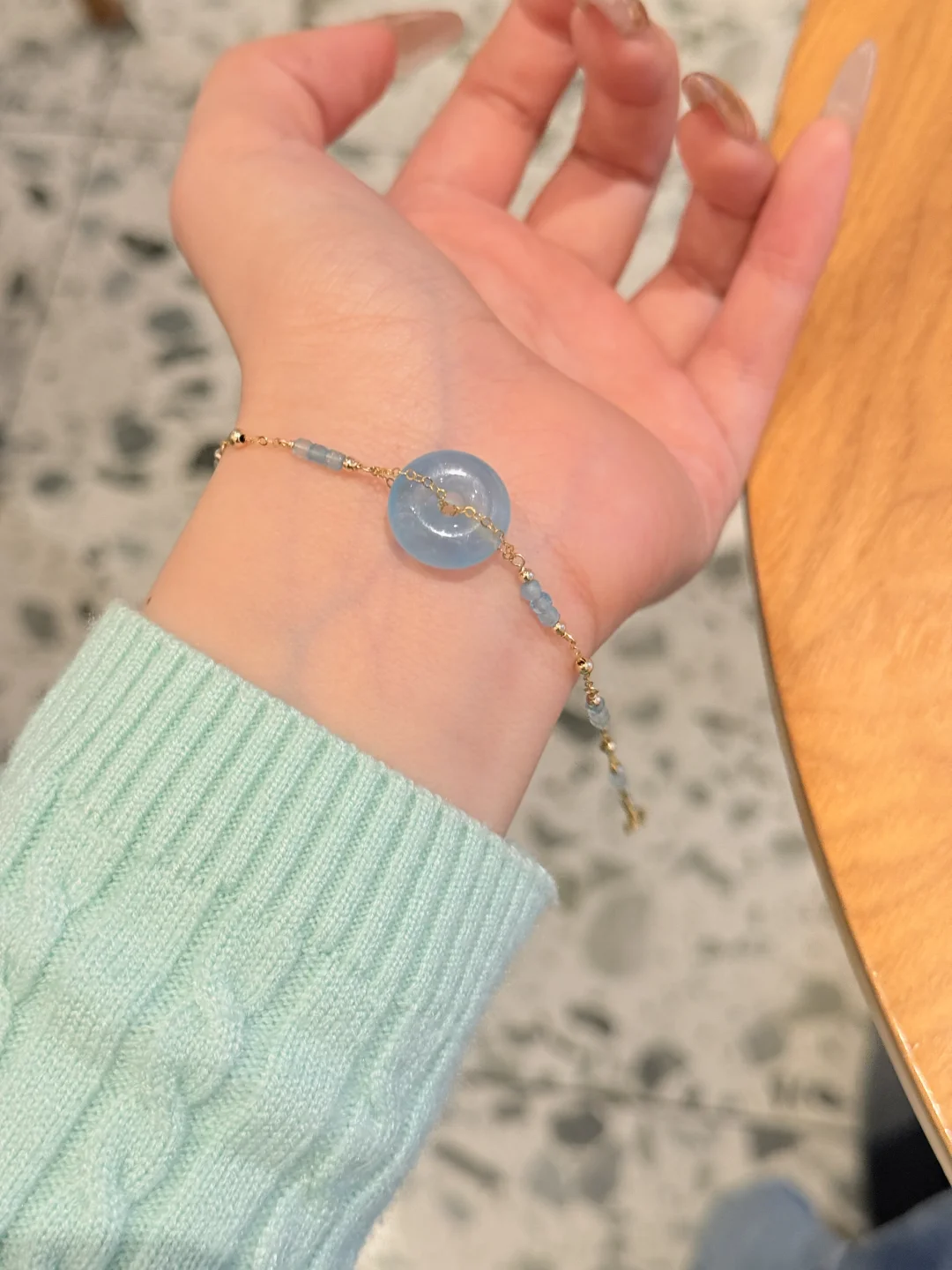 谁能在夏天拒绝一条圆圆满满的海蓝宝平安扣!