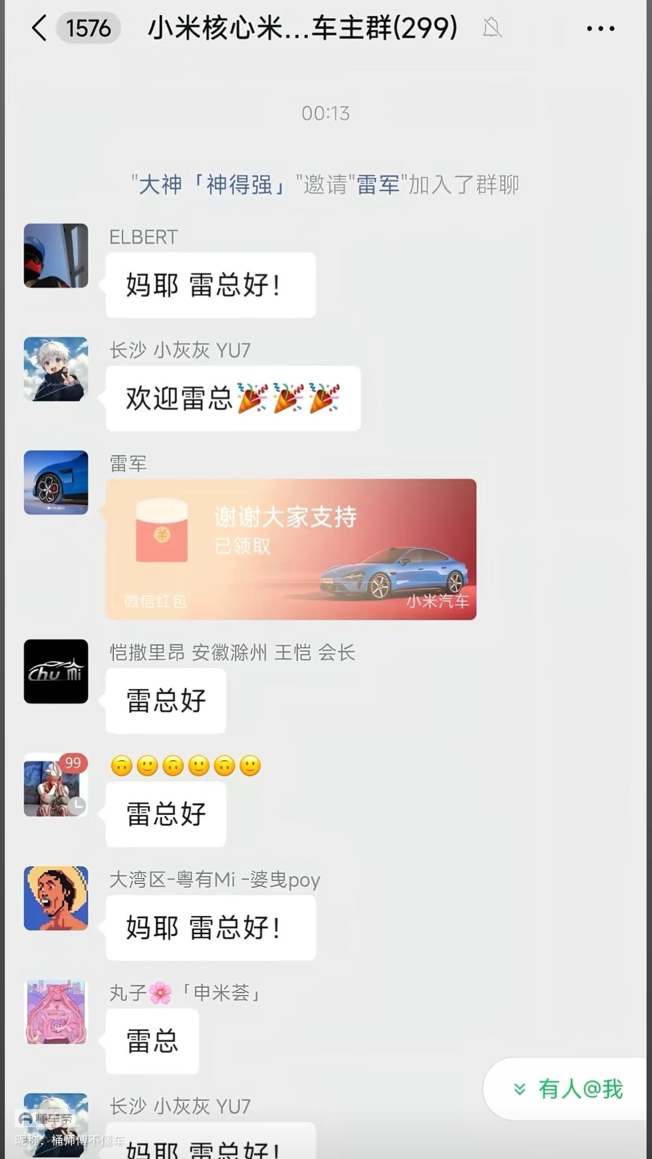 有没有车友说一下这是真的假的,刚从车友圈回来,看到小米车友圈已经炸开锅了,如果是真的话,那你们也太幸福了 小米SU7今年发布了新的车型,相较于老款车型,在智能辅助驾驶方面做了大的功能版本迭代,也更新了新的硬件配置,然后就有了后面的老板进微信群,就是不知道真假