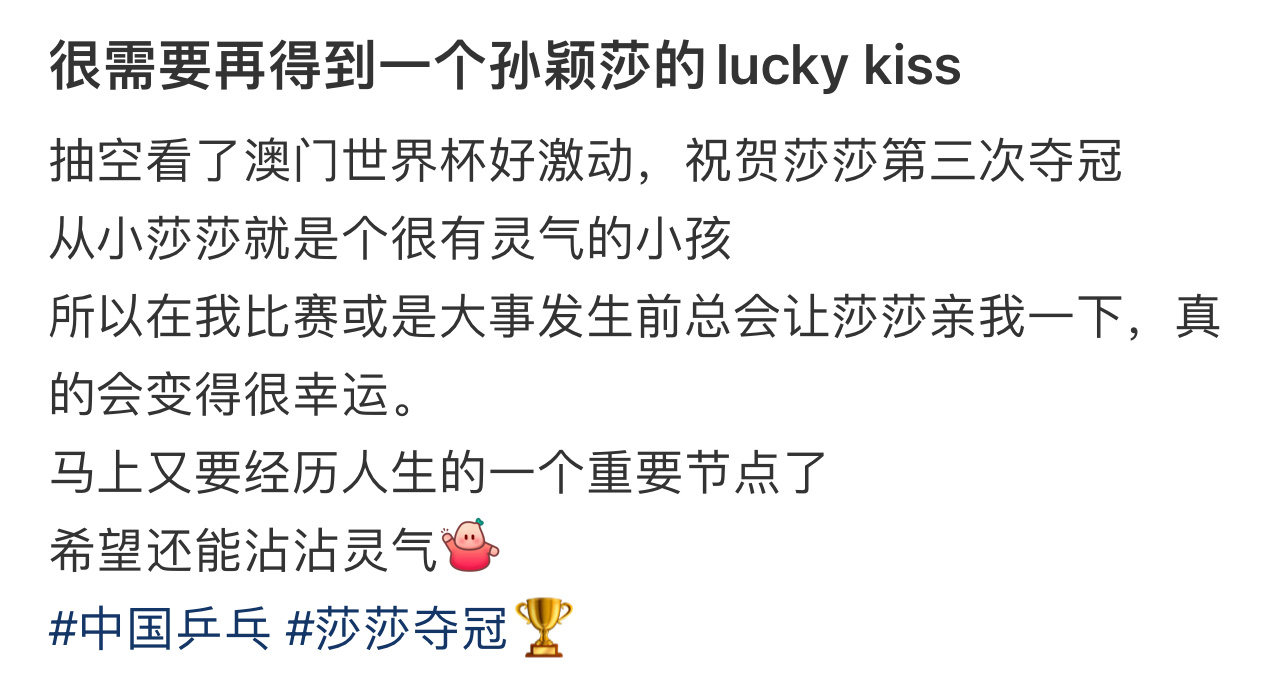 宝宝 我也要lucky kiss🥺 孙颖莎