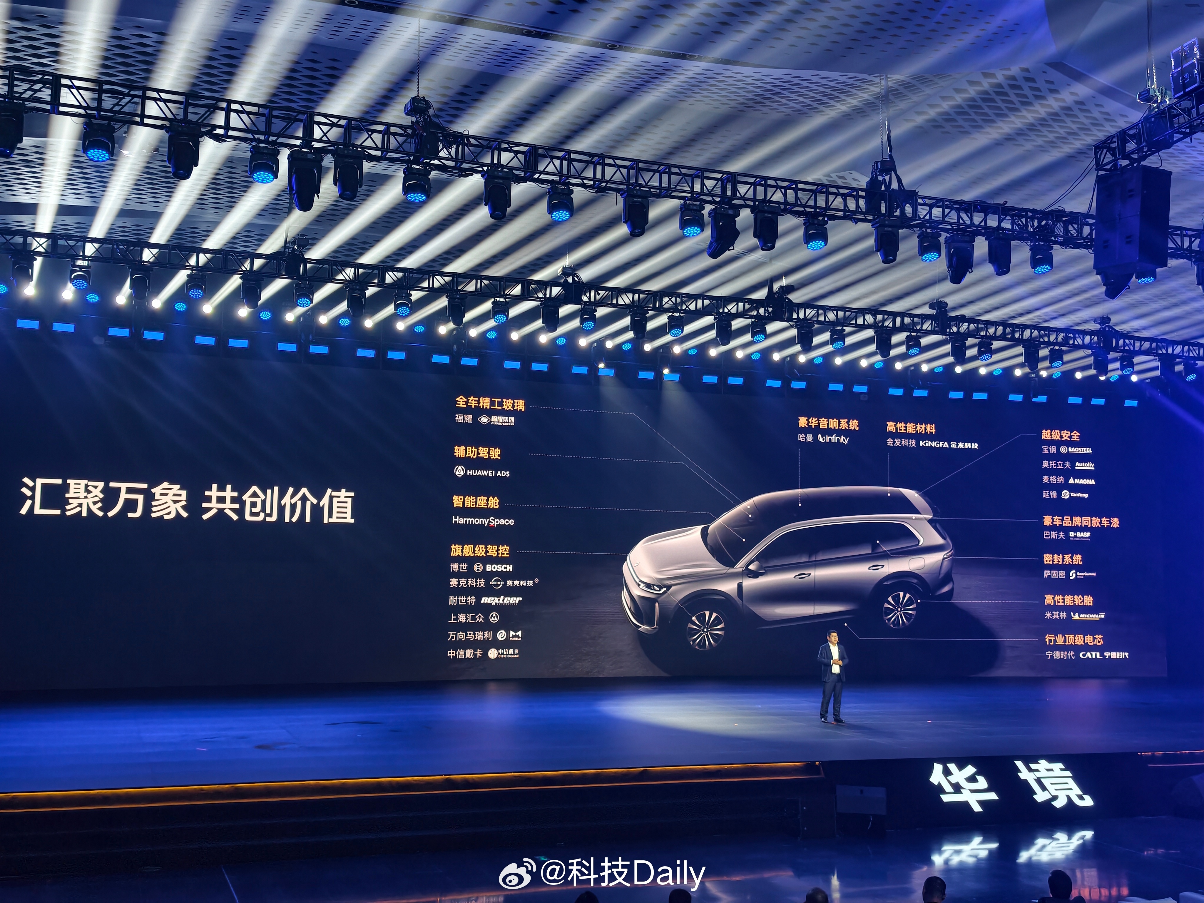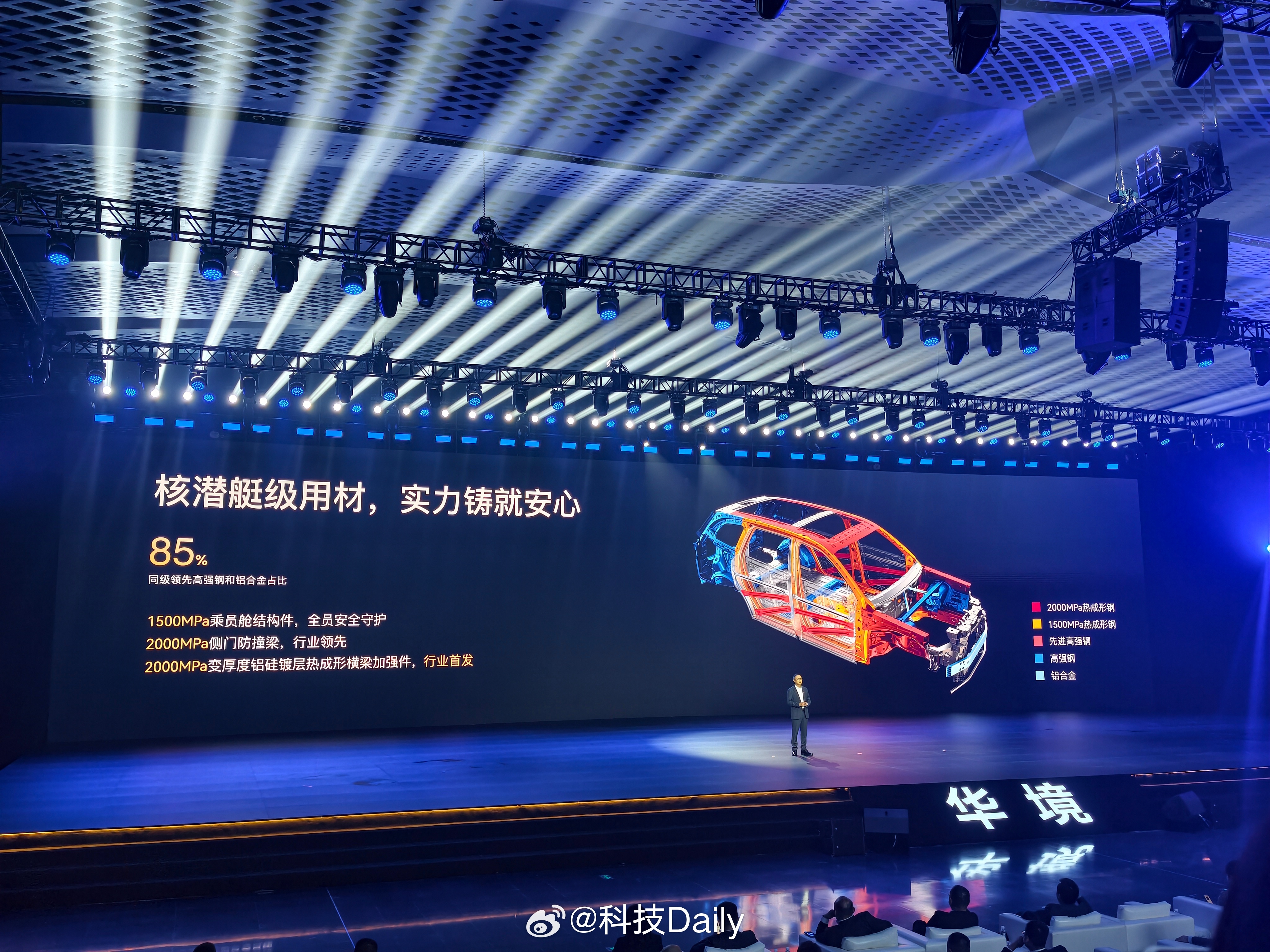 人民需要什么五菱就造什么,3200万份信赖,时代经典,满足所需。科技向上RISE,五菱科技时代造好车,华育万象 境展新篇,华境S登场。发布会现场先聊安全,最新C-NCAP,五星安全标准设计,五纵十一横底部结构,笼式六环车身框架,安全可靠真到位,更有潜艇级用料,85%同级领先高强钢和铝合金占比,用料扎实,尽显五菱品质,更有9气囊,14腔体实打实守护。现场看了实车,空间大,配置足,主被动安全都到位,人民放心开。80km/h侧碰后垂直高度15m高坡坠落翻滚挑战成功,还有神炼电池3.0,保障了电池安全。同时这款车也做到了主动安全的积极响应,全维全场景驾驶安全关键时刻及时介入,守护安全。华境S全系标配华为乾崑4月7日华境S全球首发华境S上市即支持城区领航辅助 成都·成都科幻馆