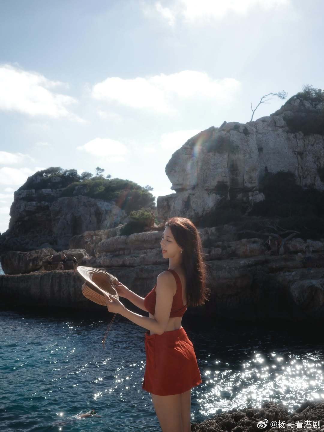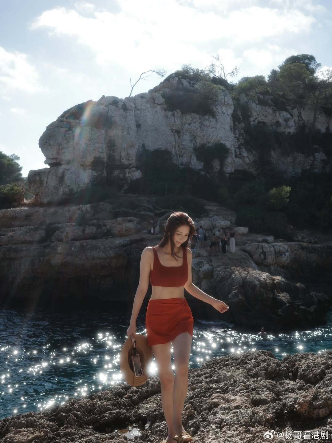 呢次陈晓华打卡嘅,系充满南欧风情嘅海岸秘境。澄澈碧蓝嘅海水依偎住层层嶙峋嘅石灰岩崖壁,晴日阳光洒向海面,漾开一片粼粼闪铄嘅星芒光斑,成个画面自带慵懒治愈嘅度假氛围。镜头入面,陈晓华以一身砖红色分体套装出镜,亮眼嘅暖调红同冷调碧海蓝天形成温柔撞色,不单止凸显出佢玲珑有致嘅优越身形,仲同明媚日光完美契合,明艳大方得嚟又不失松弛感。