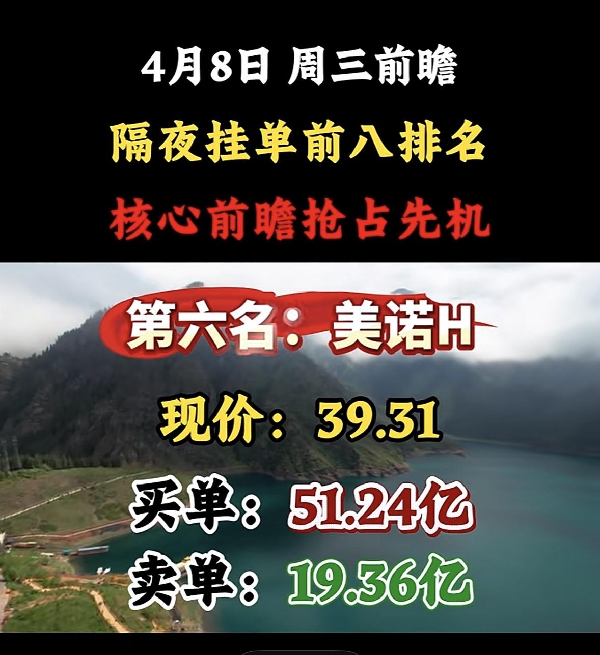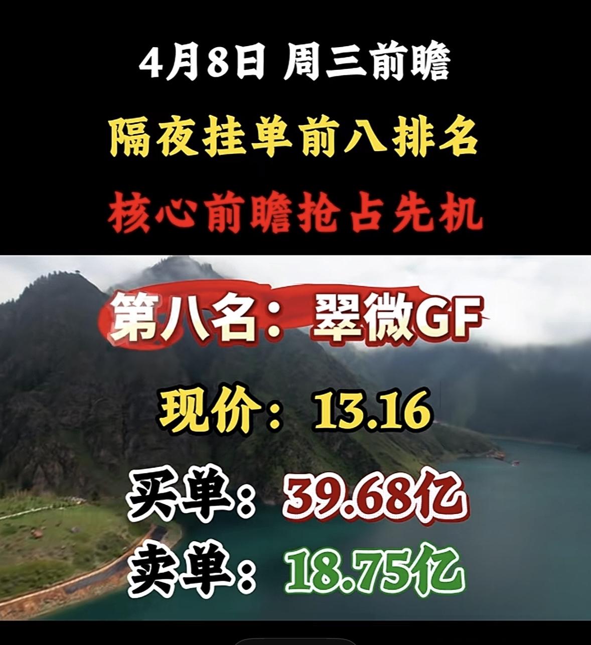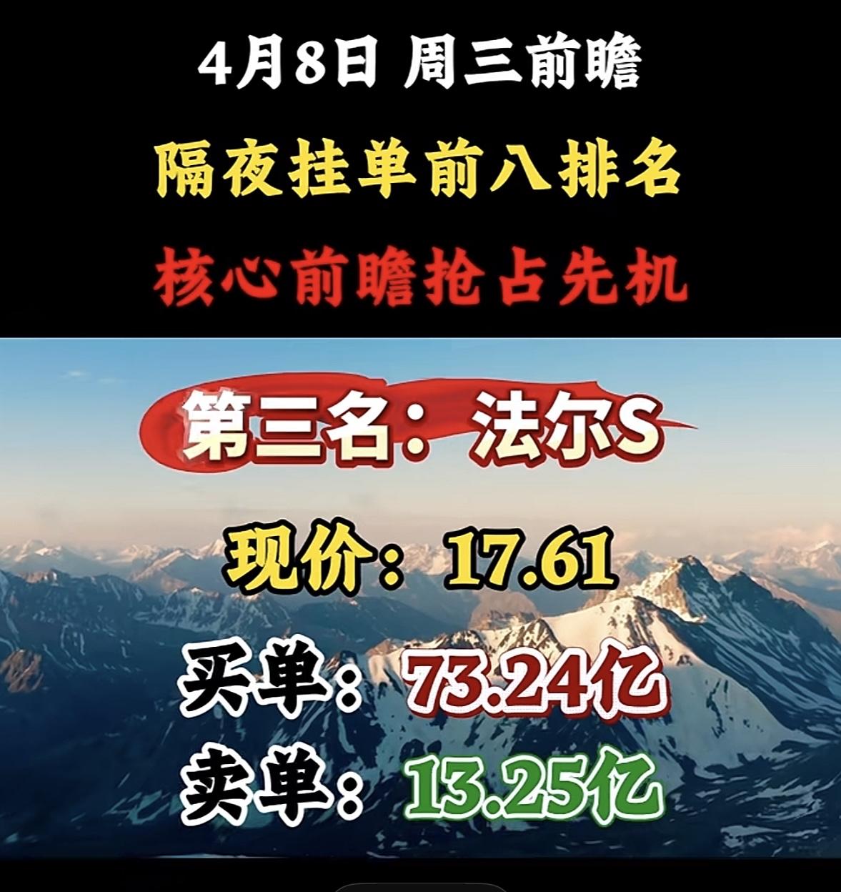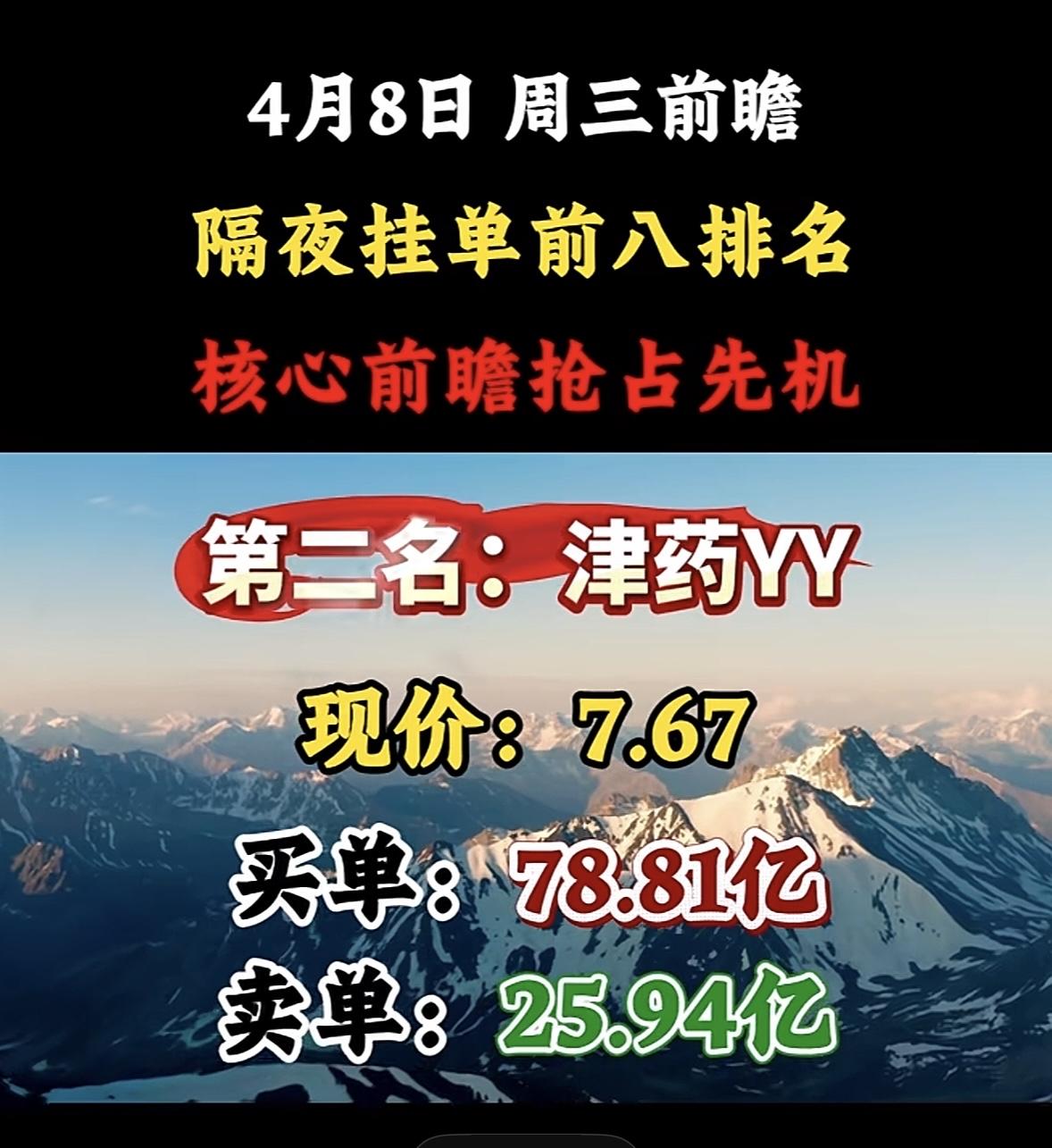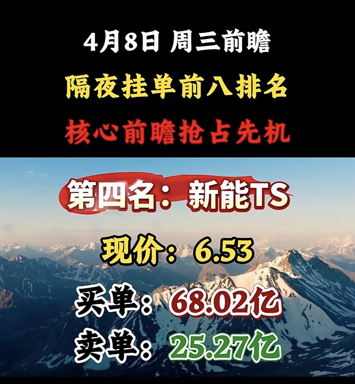 4月8日周三暗盘隔夜挂单排行榜出炉 股市如战场,隔夜挂单排名就像提前拿到的作战