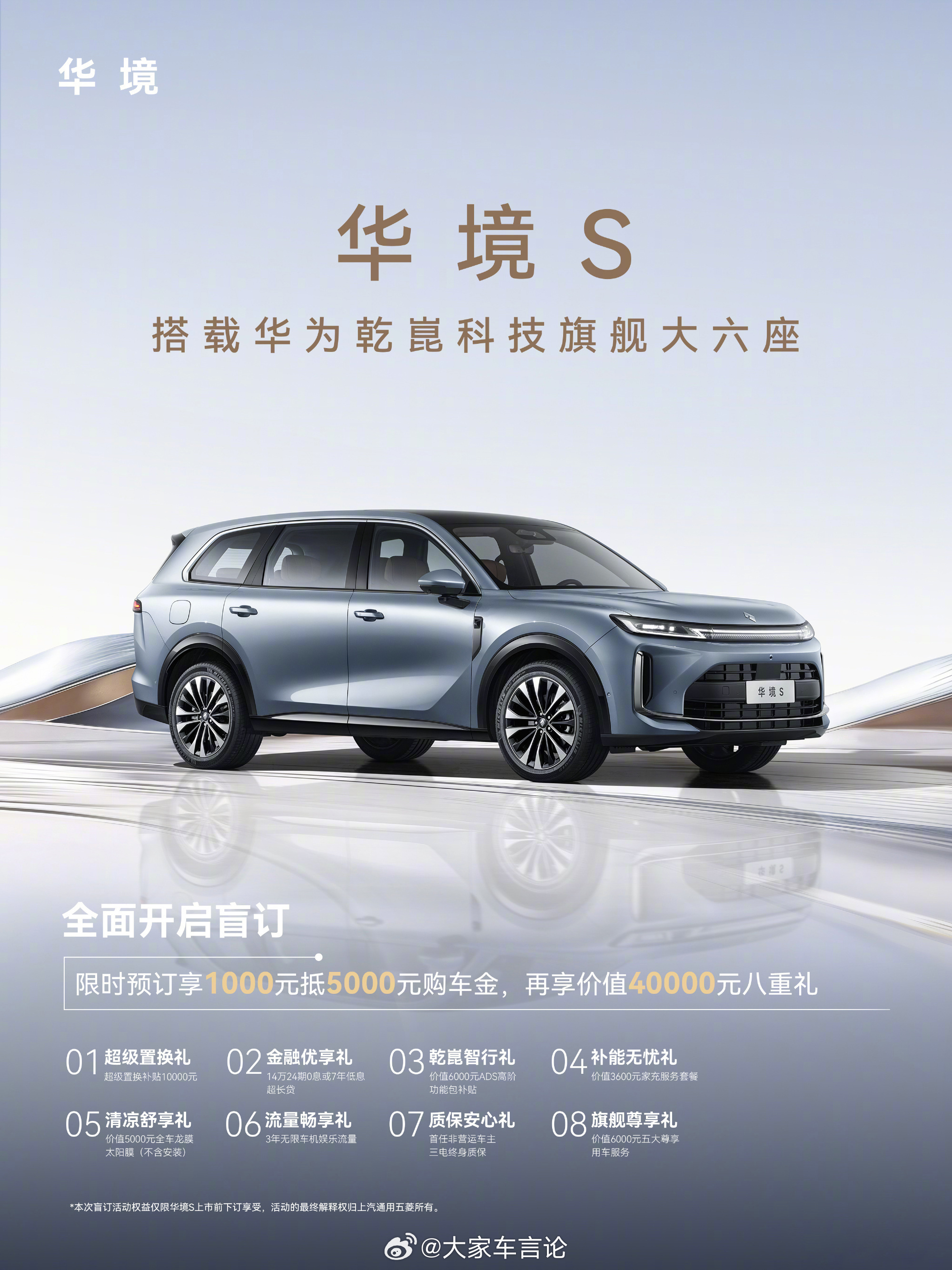 五菱与华为乾崑联手的旗舰大六座SUV华境S开始盲订,1000元抵5000元购车金,更可享价值40000元八重礼。全系标配华为乾崑智驾、华为鸿蒙座舱,更搭载首创舱内激光雷达Limera,集成激光与高清摄像头,支持城区领航辅助NCA,高速、城区、泊车等全场景智能辅助驾驶。这台新车预计上半年上市,大家会盲订嘛?