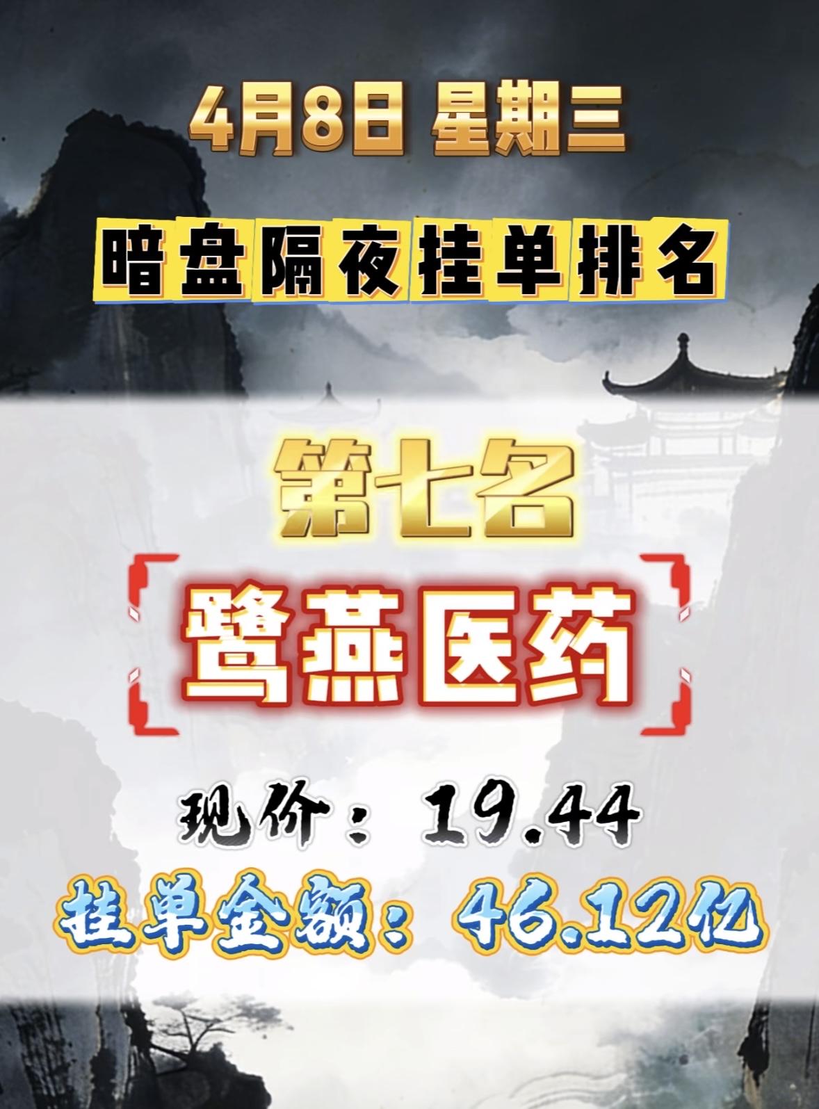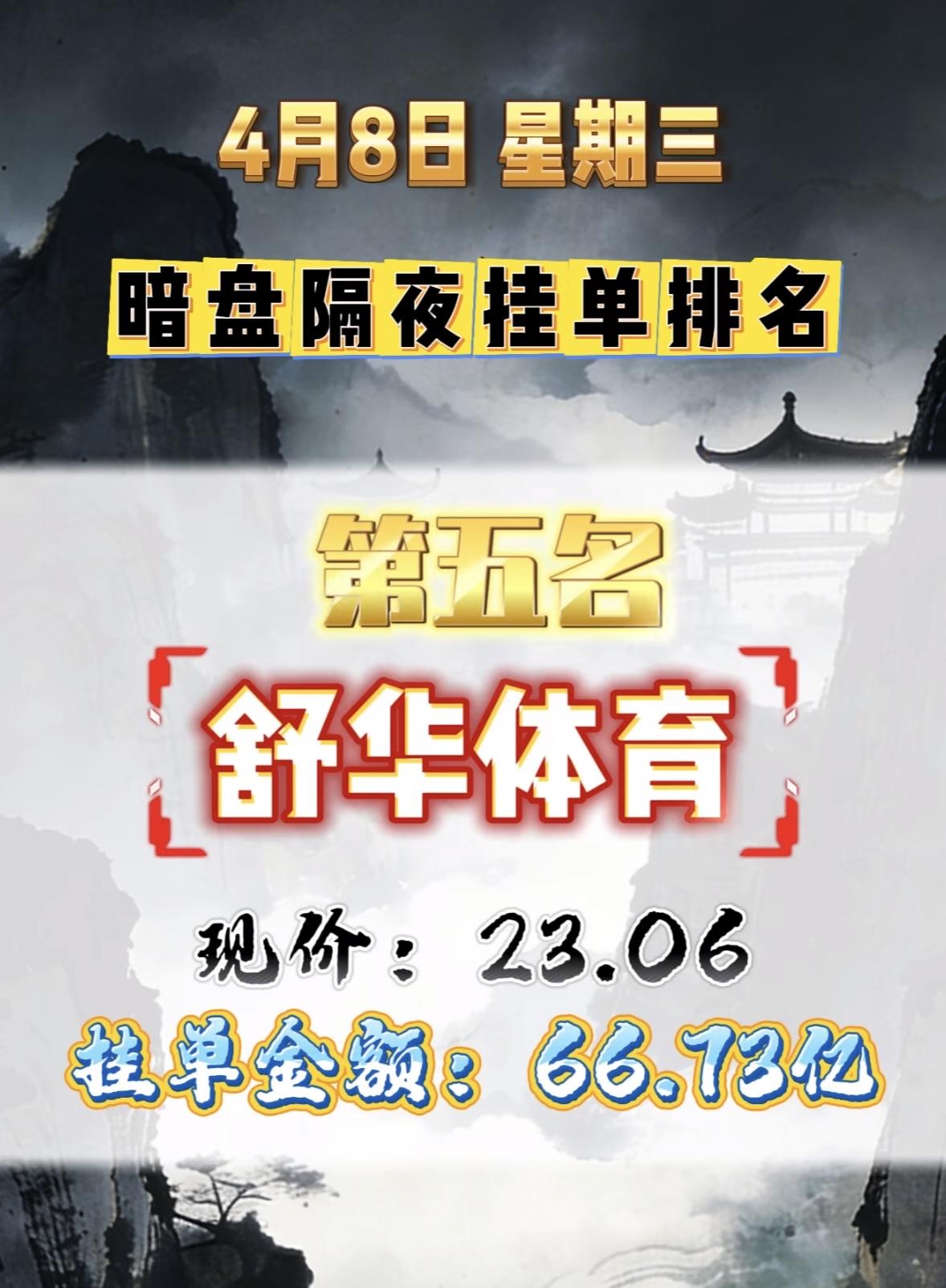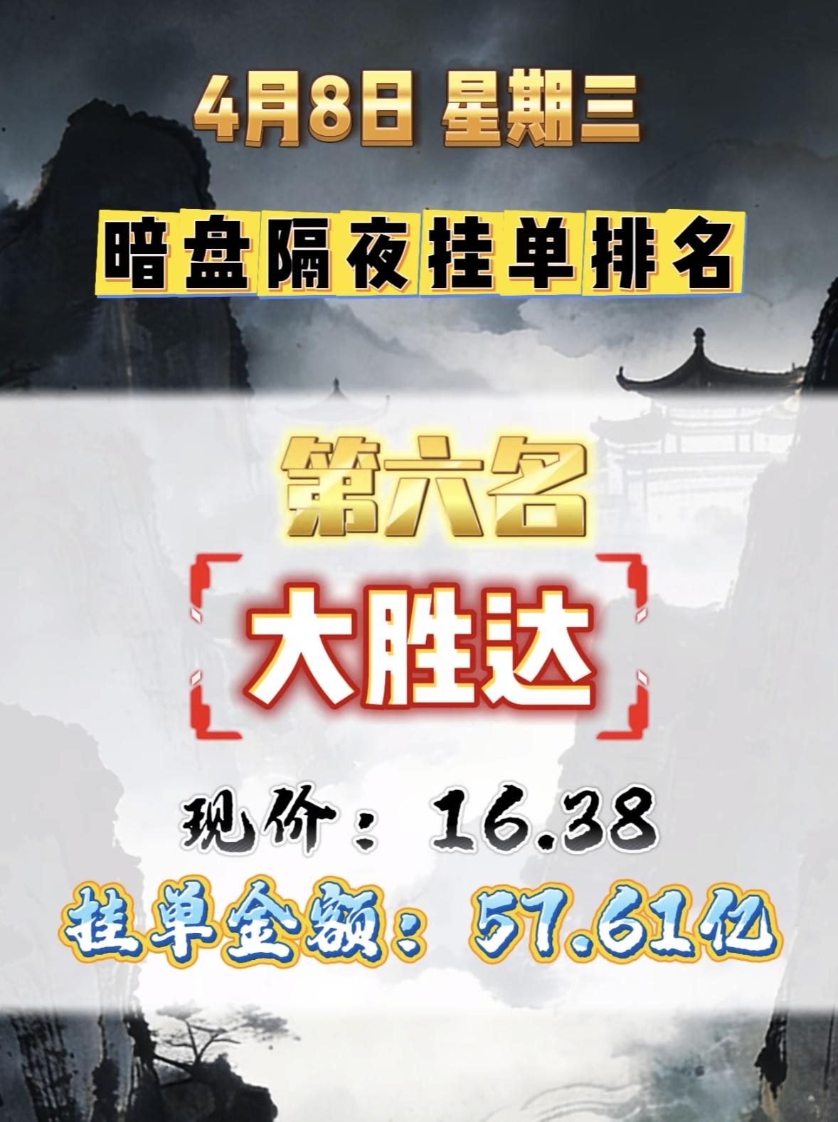 4月8日周三暗盘隔夜挂单排行榜出炉 中利集团暗盘隔夜挂单排行第八,现价5.28