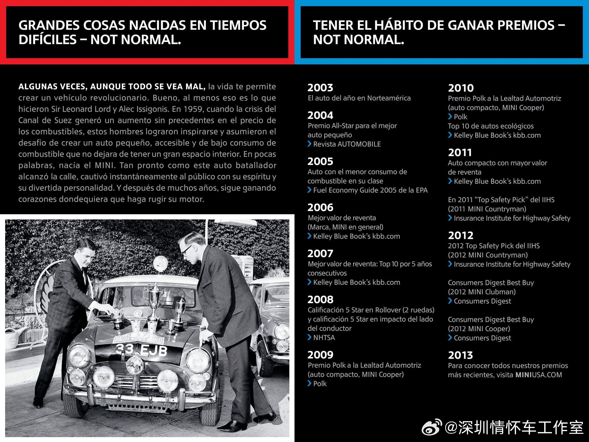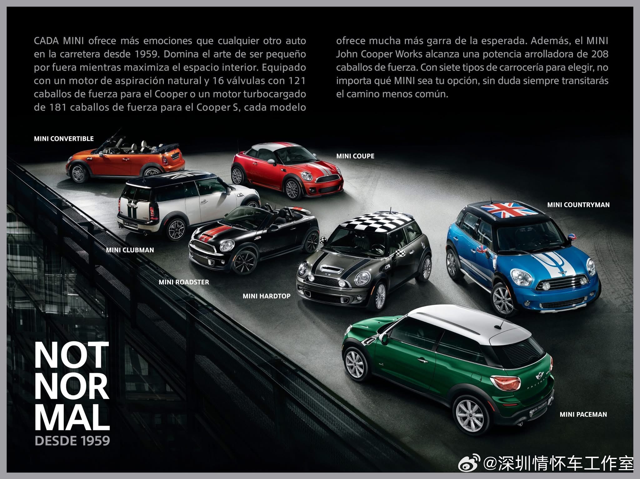 2013年是MINI(R56/R60世代)产品线最丰富的一年,共7大车型,全系主打1.6L自吸/1.6T涡轮,风格复古、操控灵动。Cooper Hardtop(三门掀背),Cooper Clubman(加长三门),Cooper Convertible(敞篷),Cooper Coupe(双门轿跑),Cooper Roadster(双座敞篷),Cooper Countryman(SUV),Cooper Paceman(轿跑SUV,2013新增)。主打操控乐趣、个性化定制、城市通勤。新增Paceman,产品线达7款,历史最齐全。全系保留复古圆灯、悬浮车顶,内饰大圆形中控。一晃十几年过去了,时间过得真快,经典还是永流存!