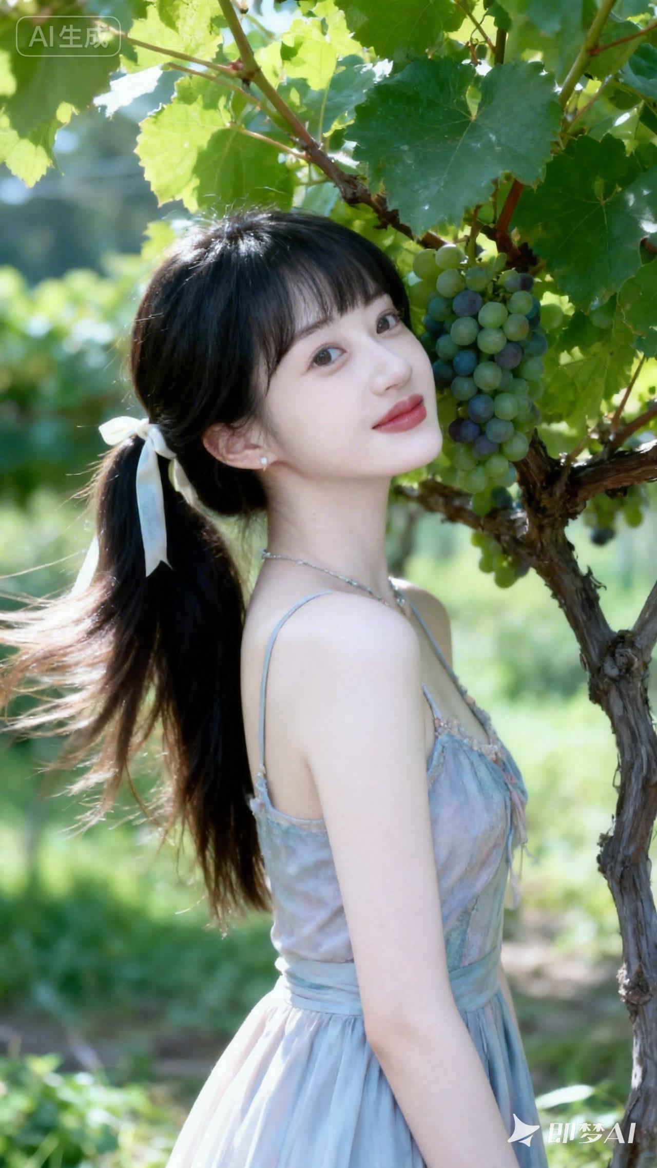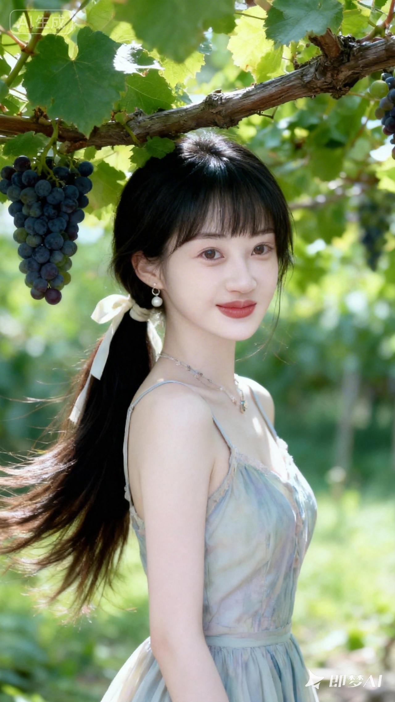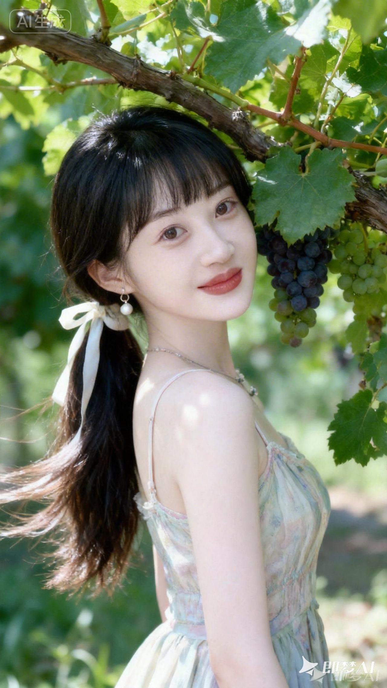 阳光下的少女,葡萄架下的甜美时光🍇🌸