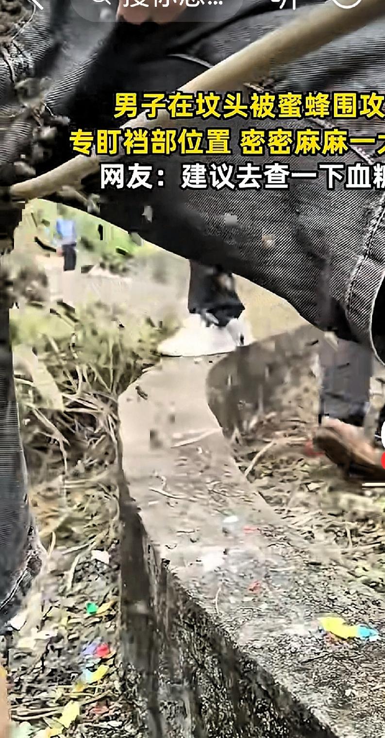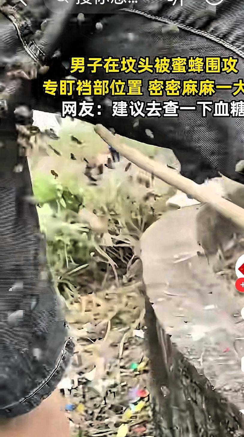 真的是奇怪了!解释不清了! 男子去祭坟,一大堆蜜蜂围着他裤裆部位停留, 原来,男子在清明节当天,和家人一起去上坟。上完坟,他站在一旁正准备拿出手机玩会时,结果他就听到了“嗡嗡”的声音,然后就有几只蜜蜂出现在他的面前。 他以为蜜蜂要蛰他脸和头,他赶忙护住脸。可没想到这几只蜜蜂全趴在他裆部位置上,他赶紧找了根树枝把这几只蜜蜂驱赶了。可是怎么赶也赶不走,后来居然是越来越多了!后来拍视频发到网上后,网友们建议他赶快去医院查血糖, 这现象真的很奇怪啊。蜜蜂为啥选裤裆部位?是不是因为尿液汗液比较多?具体是什么原因还是建议赶紧的去医院检查一下吧!