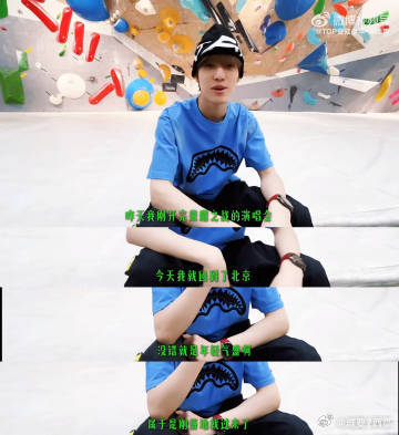 张泽禹刚下飞机就去攀岩 刚下飞机,他就奔向攀岩馆,五小时挑战不停,14分钟vlo