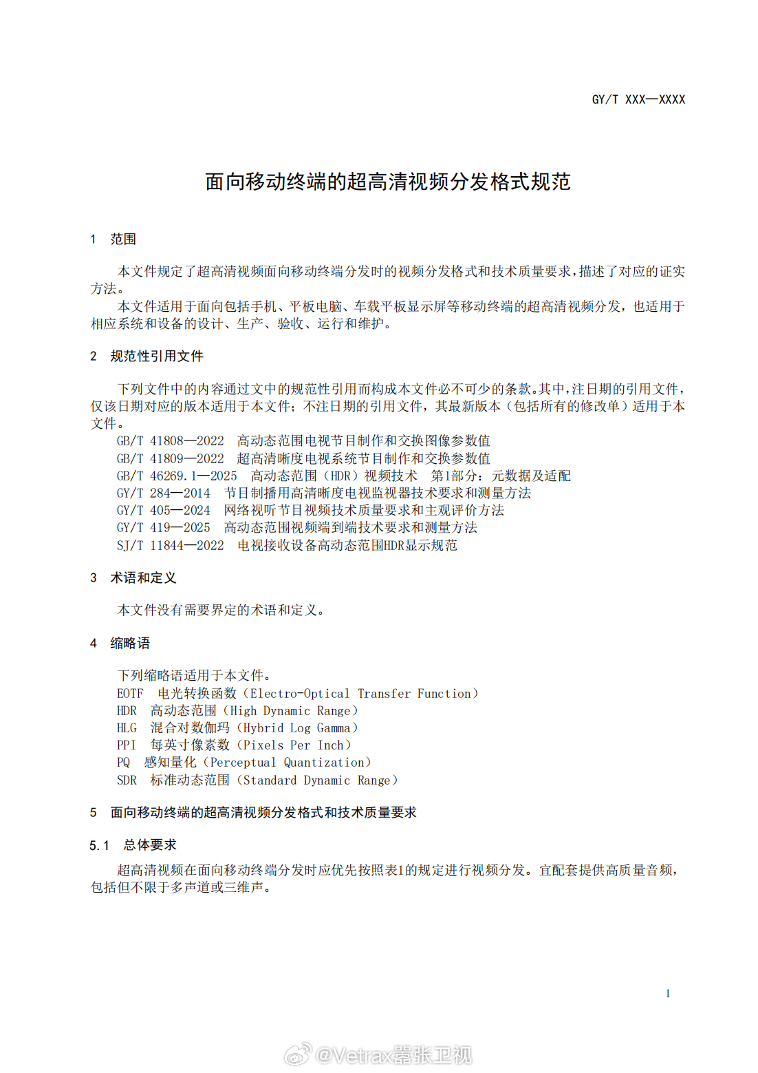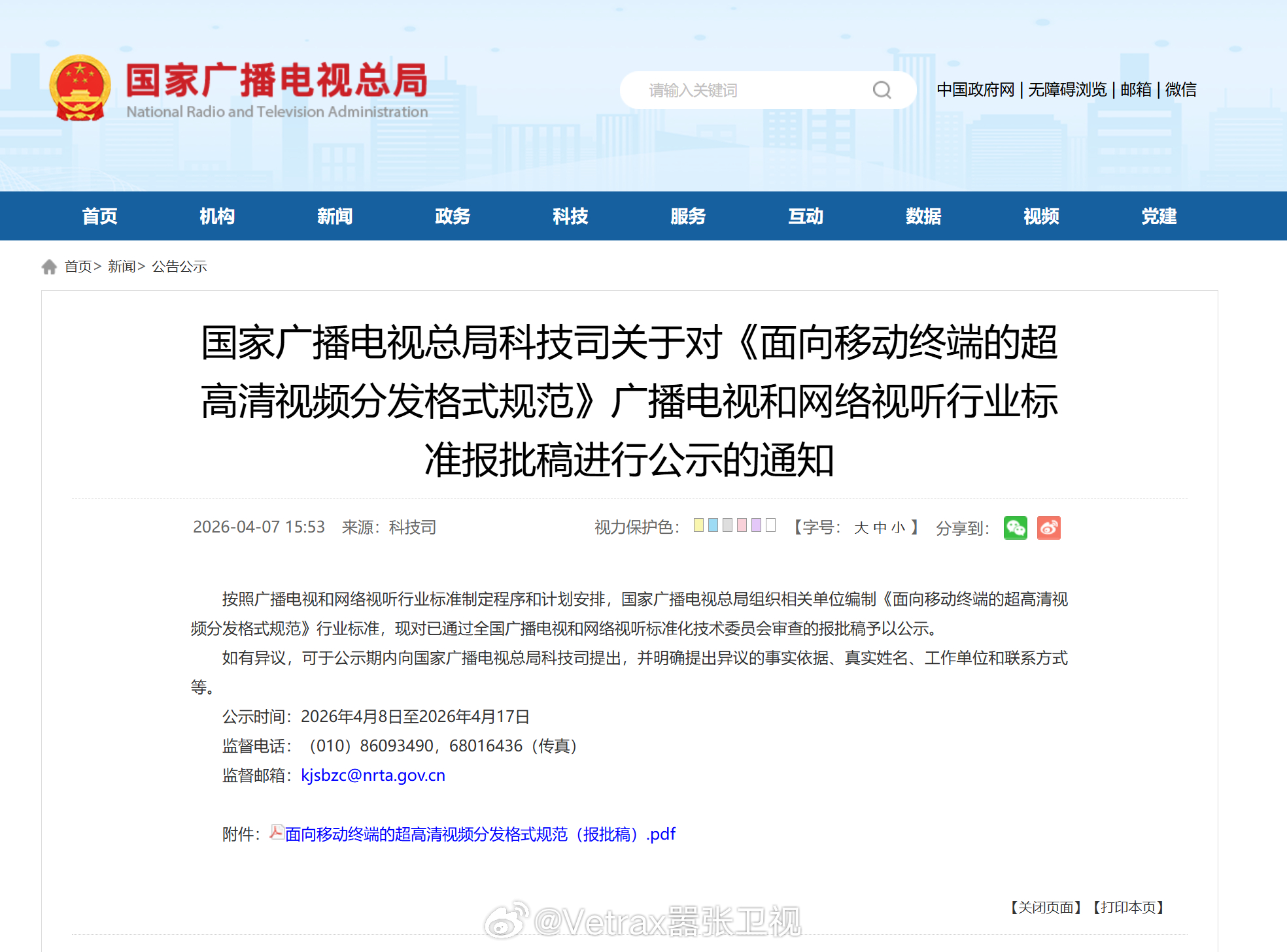 终于有手机等移动设备的超高清视频分发格式的国家标准了:国家广播电视总局科技司今日发布关于对《面向移动终端的超高清视频分发格式规范》广播电视和网络视听行业标准报批稿进行公示的通知。