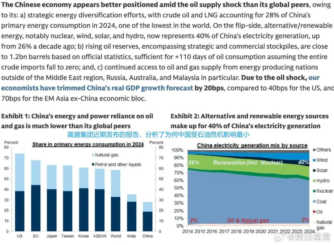 在中国发电量的来源中,燃油或者天然气发电的占比仅约3%。这就是中国为何这次能够从容应对全球石油危机的主要原因。除了东南亚国家外,世界大部分石油进口国都将积极推动新能源转型。中国将获得西方难以匹敌的优势和商业机会。最关键的是,中国的新能源转型,将让美国特朗普政府企图控制全球80%石油资源的定价权的”阳谋”彻底破产,这才是具有战略性的影响。