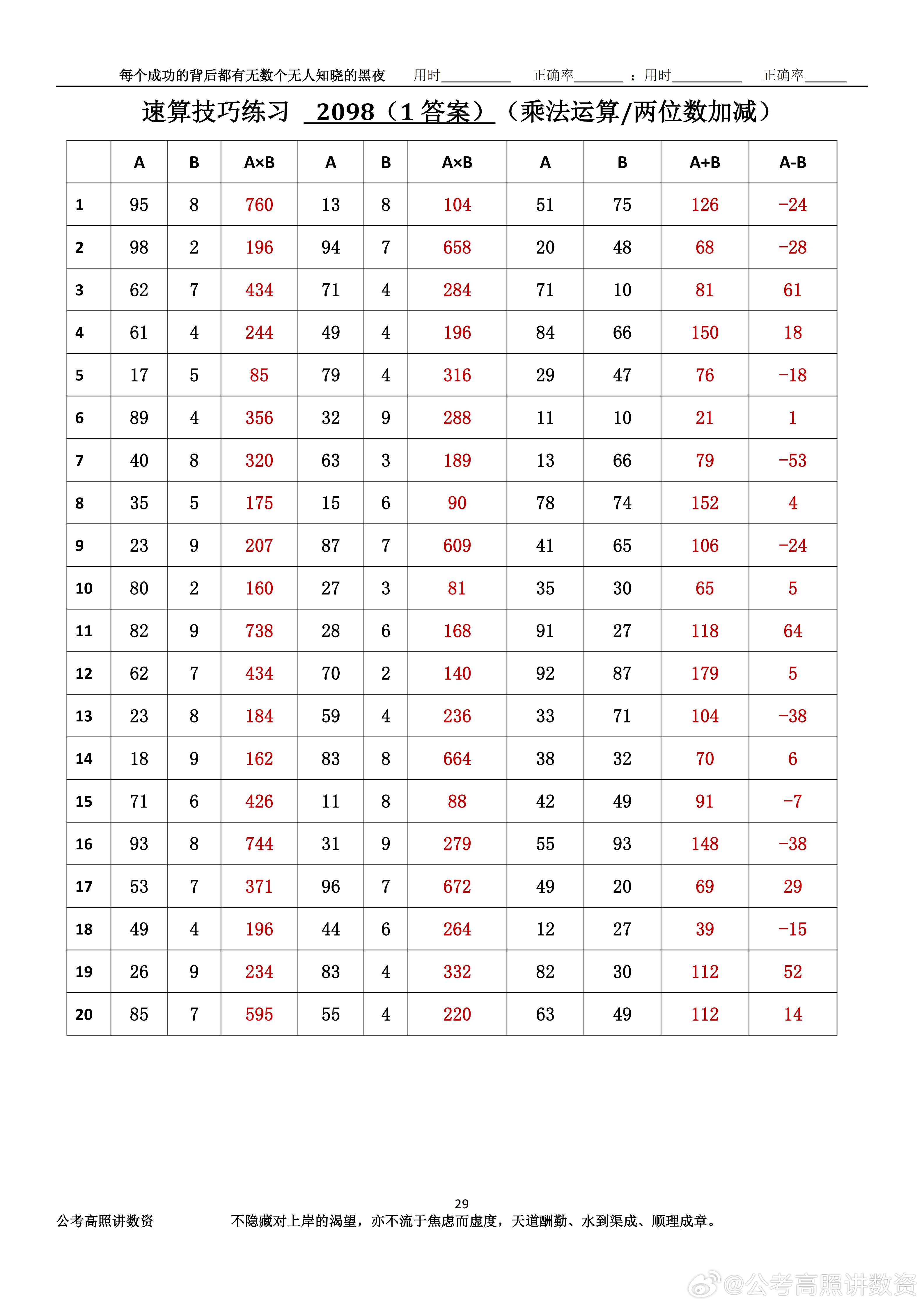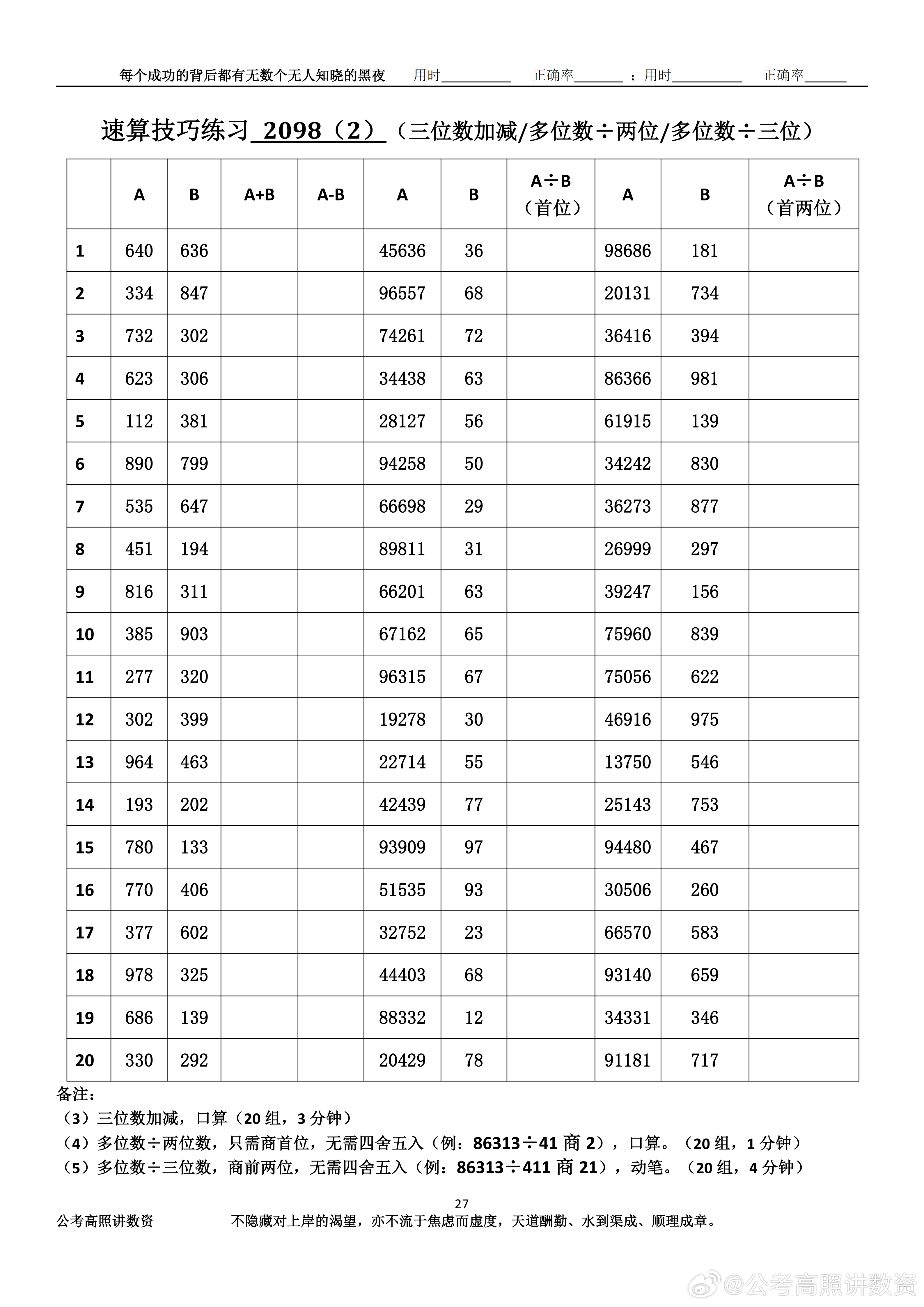 跟着高照练速算决战公考 速算练习2098相信自己,努力学习。速算链接汇总:网页