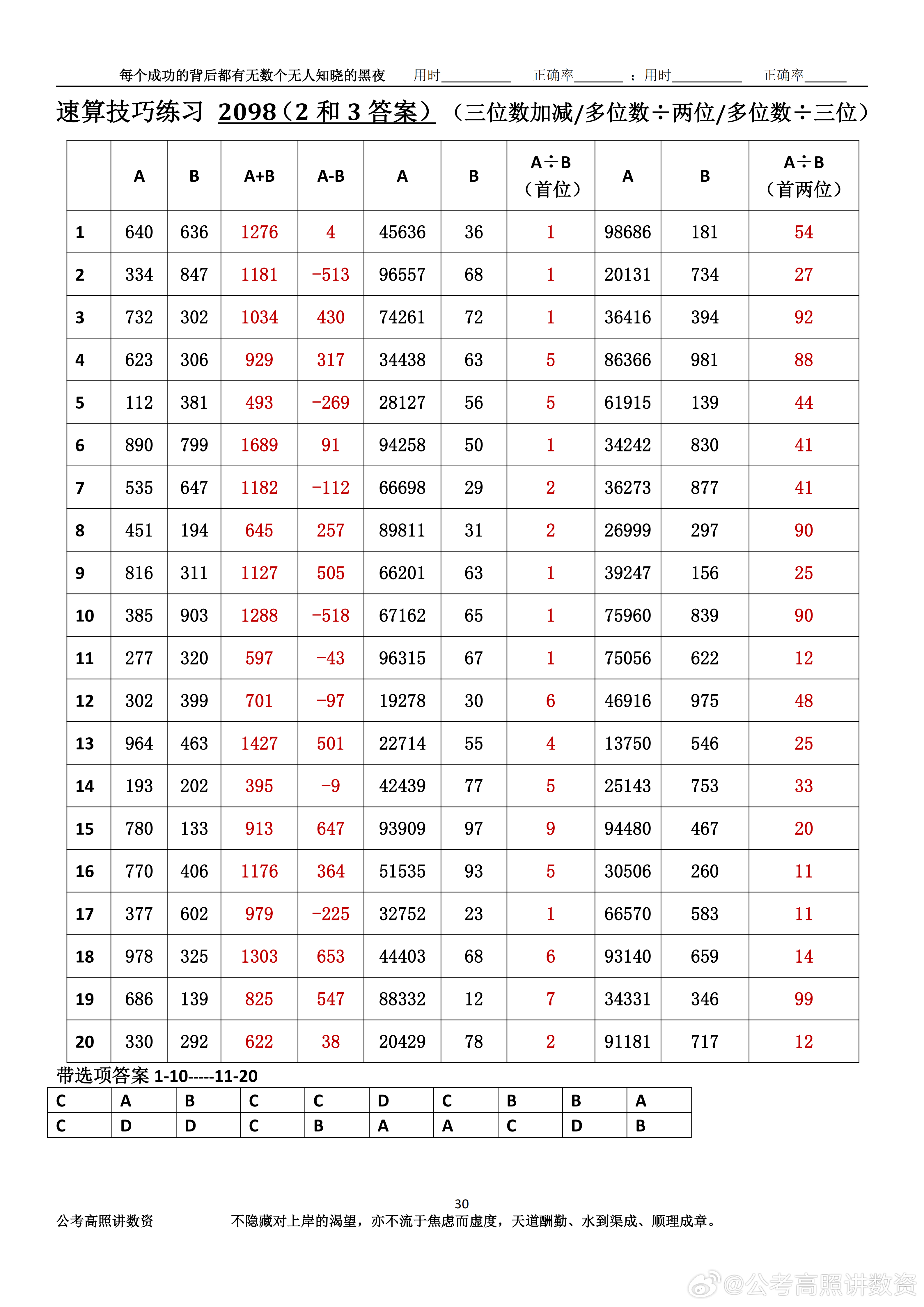 跟着高照练速算决战公考 速算练习2098