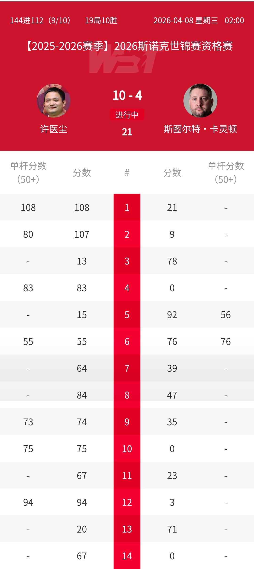 北京时间4月8日凌晨,2026斯诺克世锦赛资格赛展开一场首轮第二阶段较量,世界排
